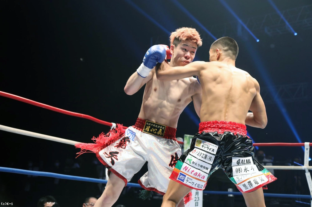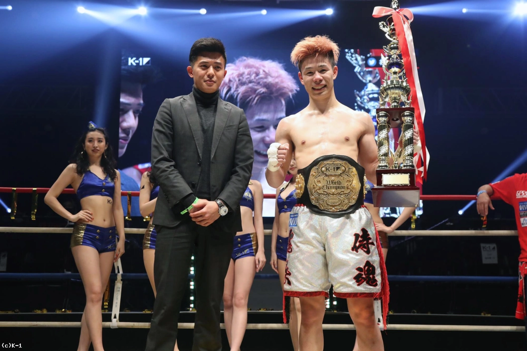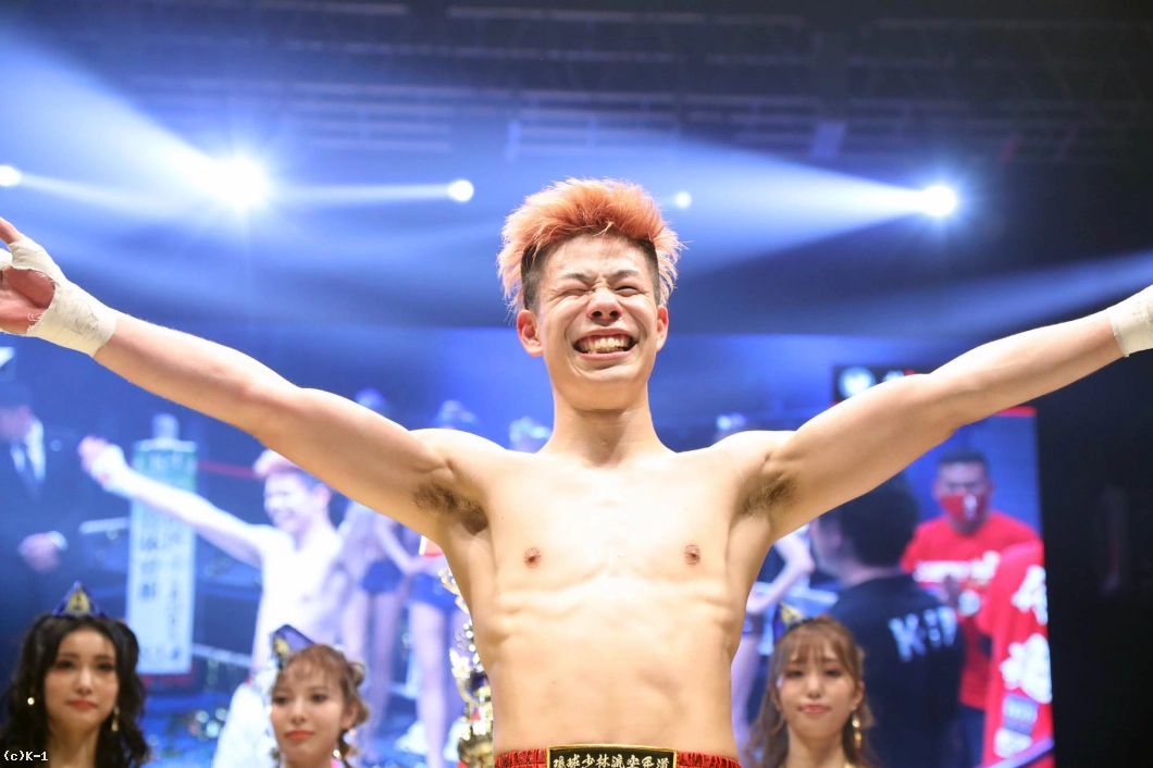 (延長は取った気持ちはあった?)やってる途中はなんとも思わないんで、絶対勝ってやるっていうぐらいには思ってました。(入場の時からかなり楽しそうというか、リラックスした表情だったが、どんな心境だった?)実は僕、今までにないぐらい緊張しとって、1R終わった時はめちゃ動きが硬かったんちゃうかなっていうふうに思うんですけど。K’FESTAっていう僕が思う最高の舞台にメインに出させてもらって、『こんなもん楽しまな損やな』っていうぐらいの『笑うしかないで!』ぐらいの気持ちでやってました。