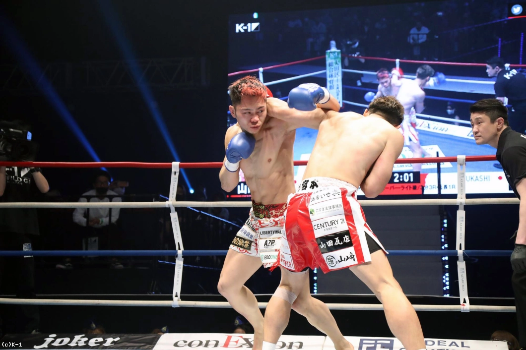 (ベルトを巻いたことで一段階上っていう感覚はあった?)まあ、そうですね。チャンピオンとしてK-1を代表するという意味では、ファイトスタイルを見せていく必要があると思いますし、ちょっと判定の多い後半でしたけど、その中で一つKOで、『やっぱ山崎の試合はおもろいな。やっぱK-1見なあかんな』と言われるファイトスタイルを僕は発信していきたいと思っています。非常に満足しています。
