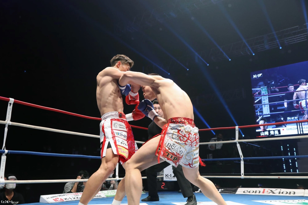 (ファンの皆さんへメッセージを)これがK-1だろうという試合をお届けできたと思います。コロナの中で試合に来ていただいてありがとうございますなんて言うつもりは僕はサラサラないんで、コロナの中でK-1に来て山崎の試合を見れて、元気出ただろうというファイトスタイルでこれからもやっていきたいと思いますんで、今後も是非楽しみにしていただければと思います。ありがとうございました」