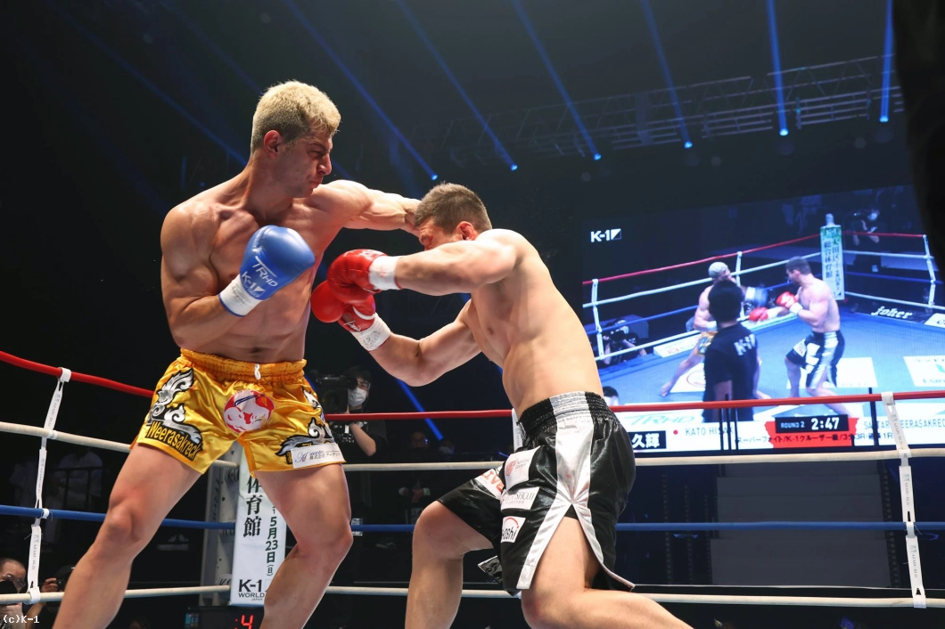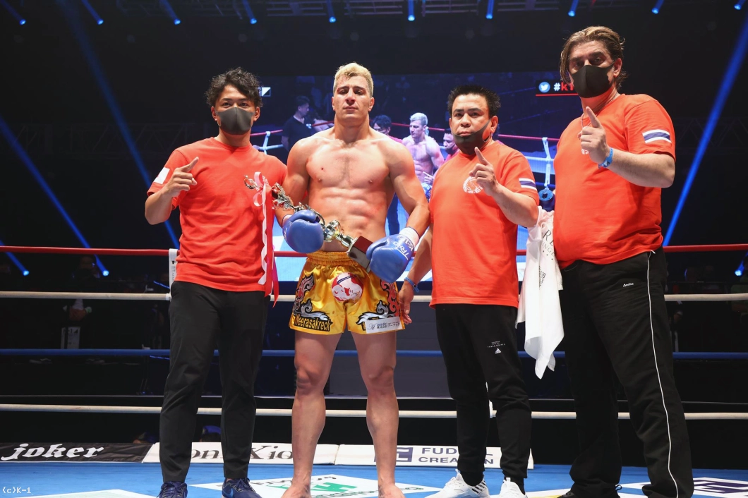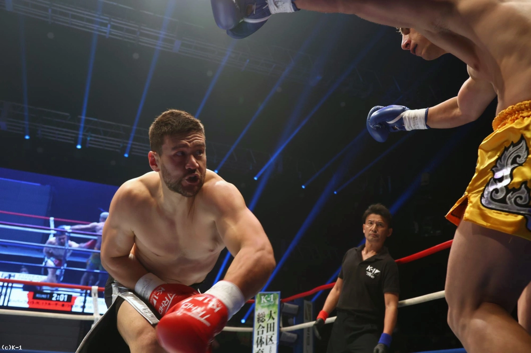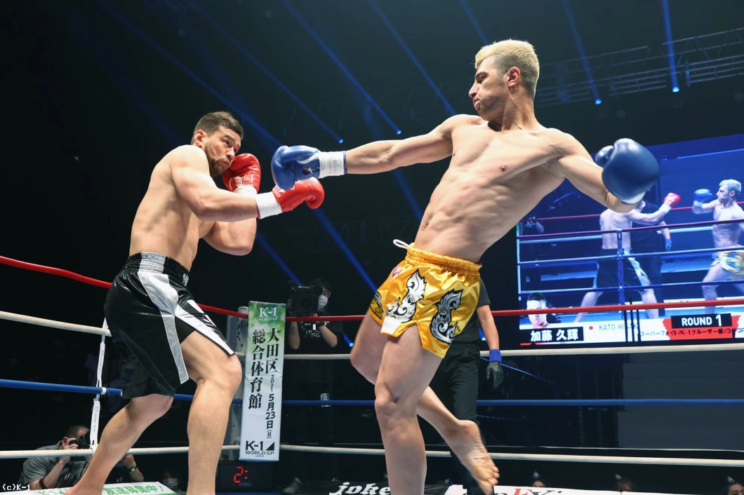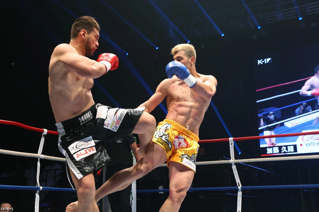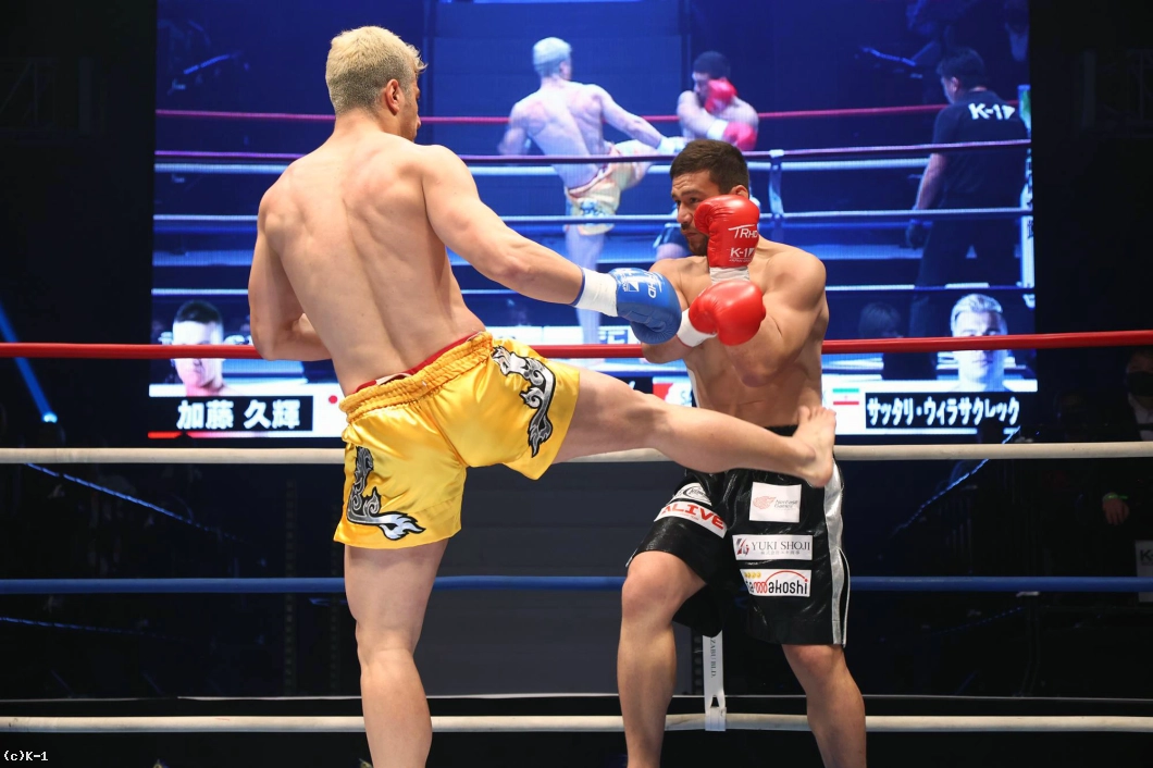 2R、サッタリは飛び込んでの左フックから右ミドルを放つとヒザが顔面にヒットし、加藤はダウン。加藤は立てず、レフェリーが試合をストップ。サッタリがポテンシャルの高さを見せてのK-1デビューを果たした。