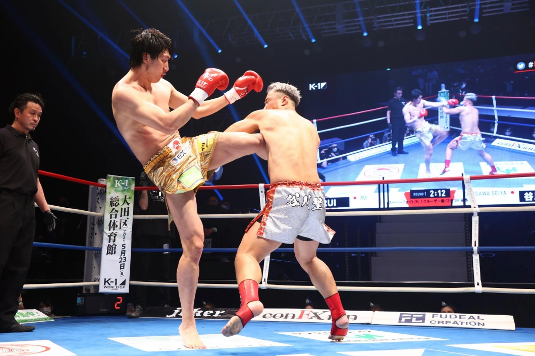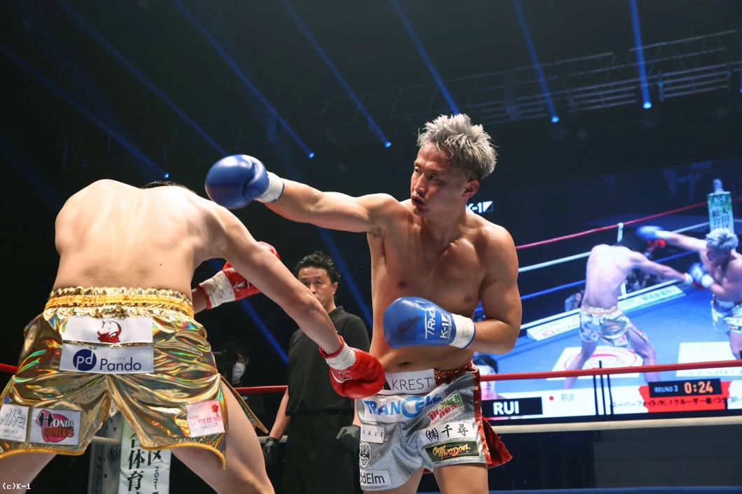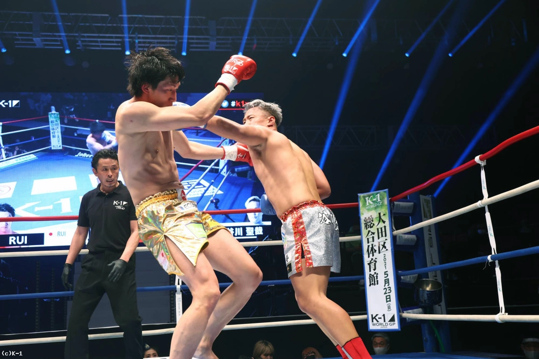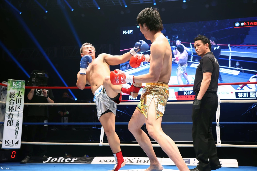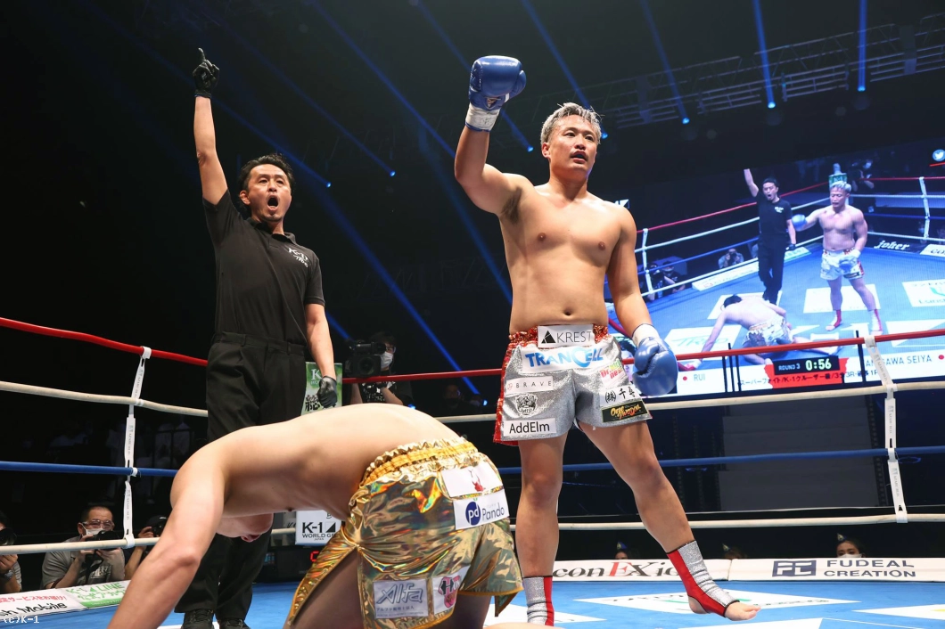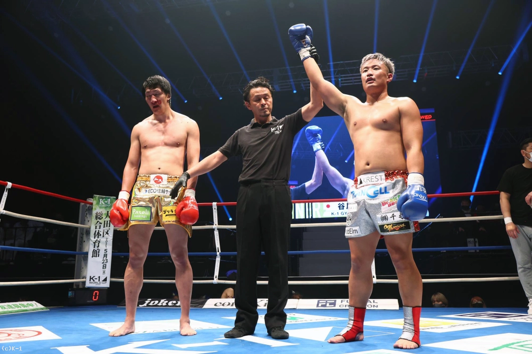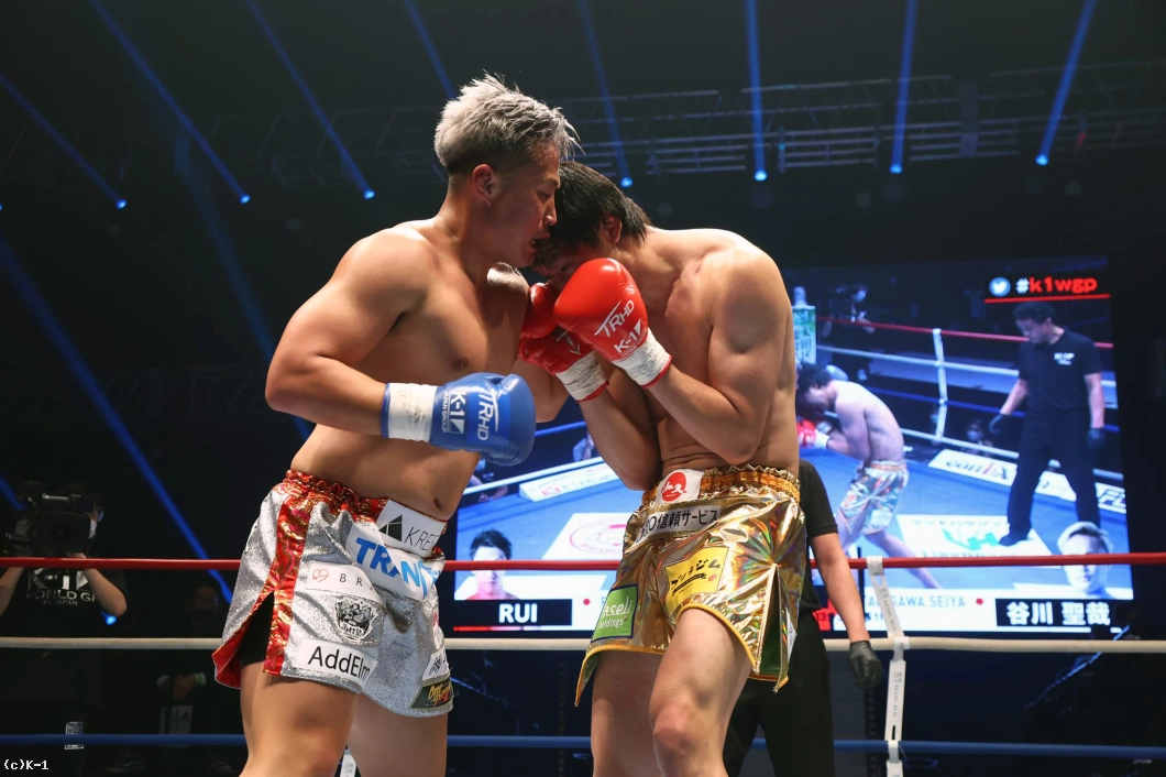 3R、劣勢のRUIは前に出てパンチからヒザを繰り出す。谷川はやや押されながらもパンチで応戦。2分過ぎ、右ストレートでRUIがダウン。後がなくなったRUIはパンチからヒザで逆転を図るも、ゴング。谷川が14cmの身長差もものともせず、勝利を収めた。