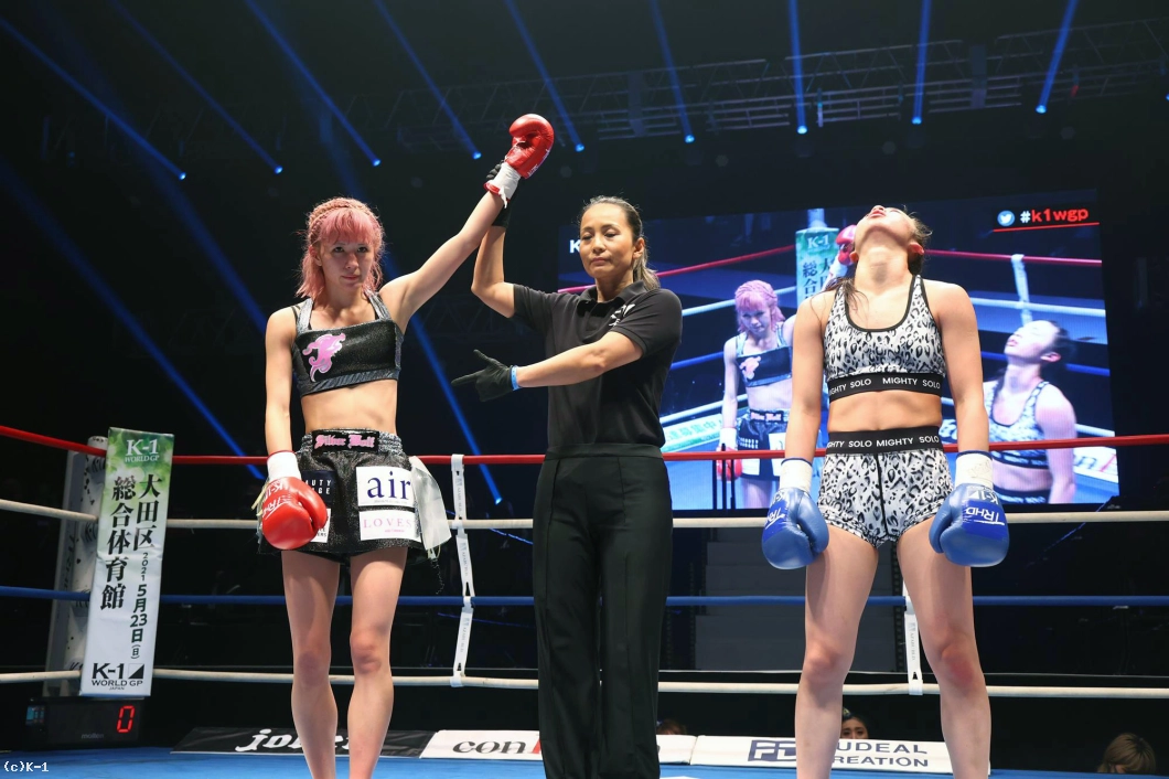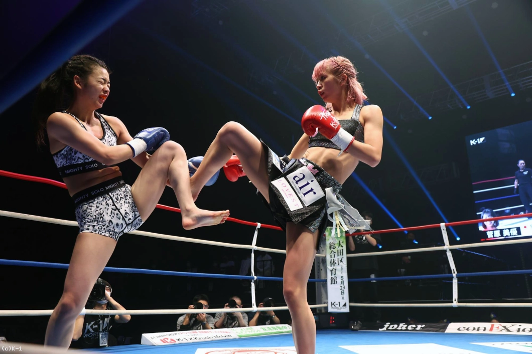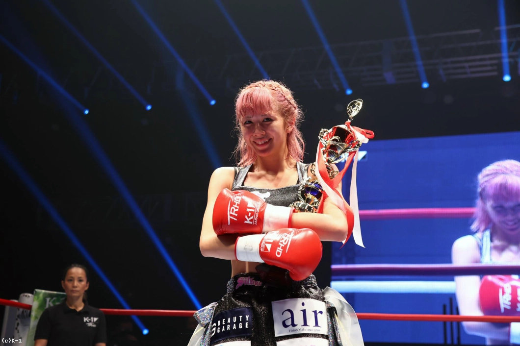 (KANA選手に階級を合わせてというのは?)KANAさんには練習でボコボコにされて、ちょっと怖いので(苦笑)。KANAさんの下の階級でがんばりたいなと思います。(K-1の舞台は?)憧れてた舞台なので楽しめました。緊張もあったんですけど、せっかく出られる機会なんてないし、楽しめなきゃというのがうまく転がったのかなって思ってます。