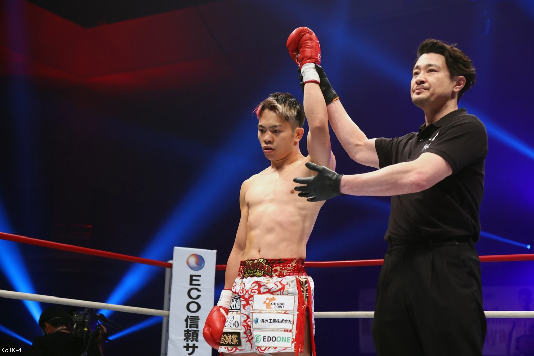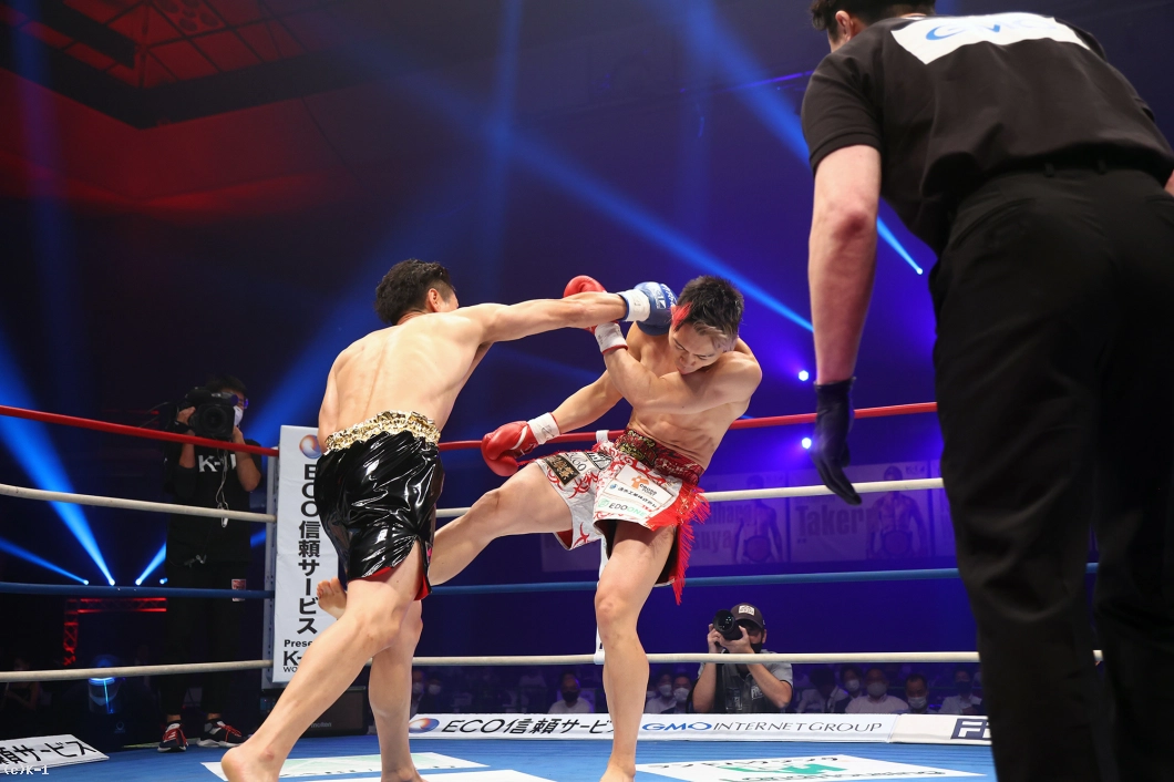 1R、アグレッシブに前に出る田村だが不可思は右ストレート、左フックを振るい、右ハイキックを放つと田村はダウン。 立ち上がった田村はなお前に出るが不可思は右ストレートからヒザを顔に突き上げ、左右のストレート連打で田村からスタンディングダウンを奪う。