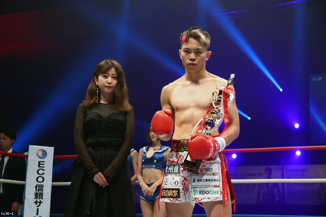 「バチっと倒したかったんですけど、すみません。みんながどう思ってるか知らないけど、俺はK-1のベルトを獲る気でいるんで、よろしくお願いします。福岡、ありがとうございました」