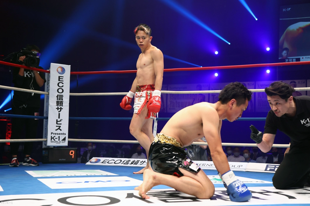 (2回目と3回目がスタンディングダウンだったのは)相手の執念もあったかもしれないですけど、自分が中途半端だからガッツリ倒しにいくわけでもないし、みたいな。倒そうみたいな気持ちもありつつ、何かいろいろまだやりたいと思いつつって感じだったんで、何か中途半端な感じになっちゃいましたよね。(ファンの方へメッセージを)まだまだK-1のベルトを獲るという気持ちは何も変わってないんで、これからも応援よろしくお願いします」