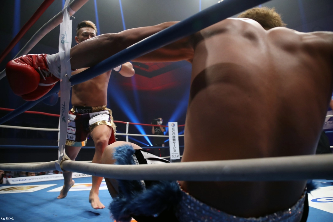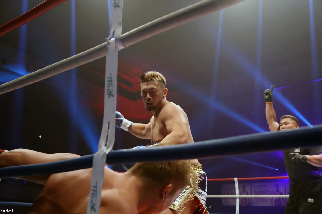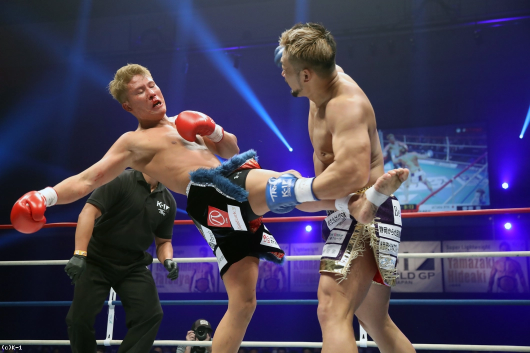 「(試合の感想は?)ダウンを奪い合いの、結果はこういう形になってしまったので、自分の完敗です。ありがとうございました。(相手の印象は?)ダウンを取ってからの盛り返しがやっぱり、地元・福岡ってことですごく気合いが入ってて、自分も気合いをバッチリ入れてきたんですけど、その気持ちの差だったのかなと。気持ちの強い、K-Jee選手らしい戦いだったと思います。