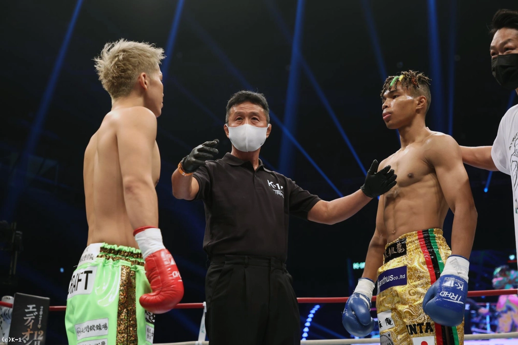 1R、両者オーソドックスで寧仁太が右ストレートを当てれば小嶋も右フックをヒット。開始から両者打ち合いを展開。連打に来た小嶋に寧仁太は右ストレートを側頭部に打ち込みフラつかせる。しかし小嶋は持ち応え、アッパー、ボディ打ちを交えたコンビ—ネーションで迫るが、寧仁太はガードが固く破らせない。飛びヒザ、右ストレートで攻める寧仁太。