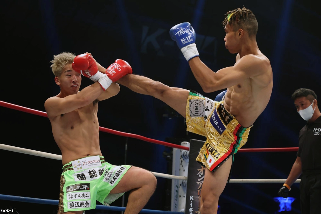 3R、右ローで寧仁太を揺るがせる小嶋。寧仁太は前進して間合いを潰し、左ボディフック。小嶋も右ストレートを1発、2発と当てていく。だが寧仁太も右ストレートを当て返す。接近戦での右ショートストレートを効かせる寧仁太。アゴを跳ね上げられる小嶋だが、右ローを返し、右ストレートで反撃する。寧仁太が左ハイ、小嶋がバックスピンキックを繰り出し終了。判定は30-29、30-28、30-28の3-0で寧仁太。削り合いを制して準決勝に上がった。