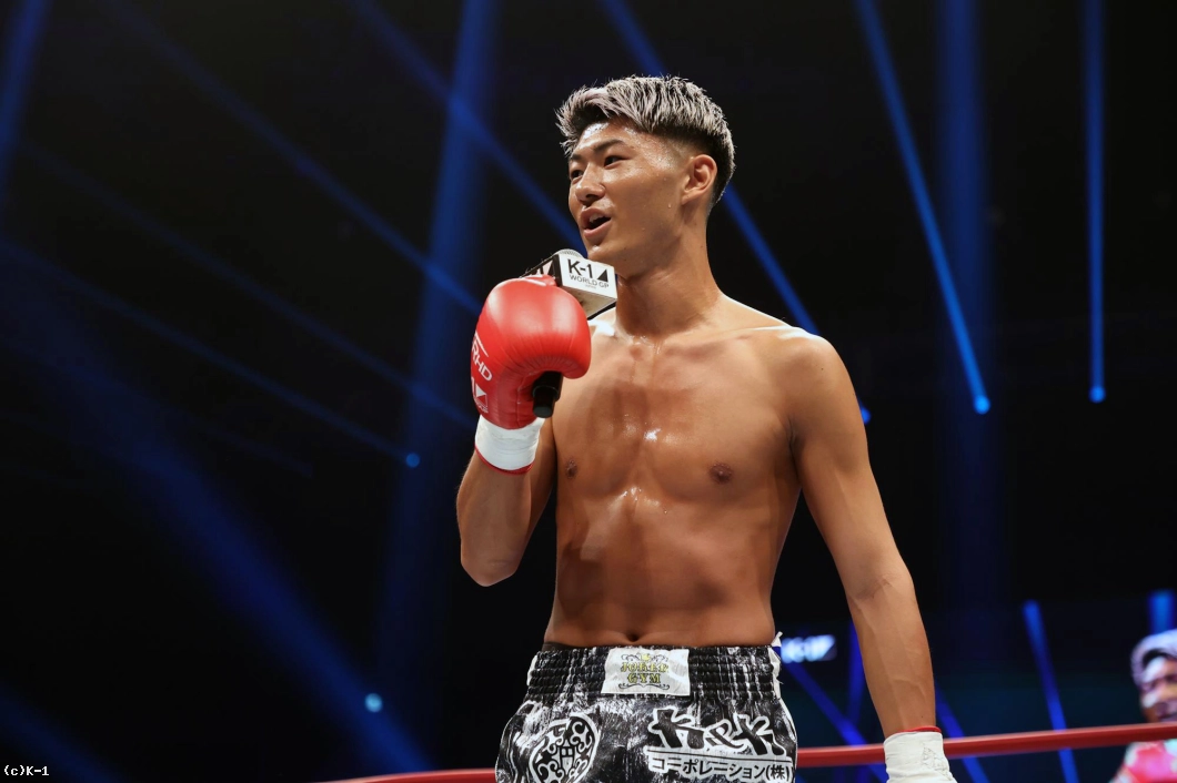 「(試合の感想は)素直に、KO勝ちができてホッとしてます。(相手の印象は)一発があるのは分かってたので、もらわないように警戒して戦いました。(2回とも同じハイキックでしたが)練習からずっとハイキックを蹴ってて、当たるなと思ってたので、試合で出して1回目のダウンでハイが入って、見えてないなと思ったので、そのまま2回目も同じように蹴ったらそのまんま当たったっていう感じです。(ベルトへのアピールは)やっぱりやるからには一番になりたいんで、ベルトというのが一番分かりやすい答えだと思うので、タイトルマッチは挑戦したいなと思ってます。