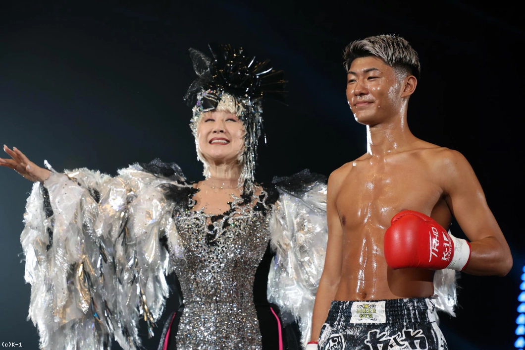(試合後、小林幸子さんと並んでの感想は?)衣装もメチャクチャ派手で、オーラみたいなのがすごかったですね。(もともとどれぐらい認識してましたか?)名前は知ってるっていう程度で、何をされてる方とかはそんなに知らなかったです。(ファンにメッセージを)今回もKO勝ちという、いい勝ち方ができたので、次回、対戦相手とかもまだ分からないし、いつになるかもまだ分からないんですけど、次もいい勝ち方ができるように頑張っていくので、、応援お願いします」