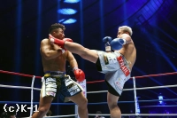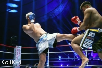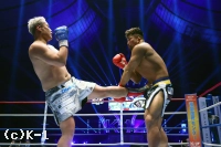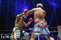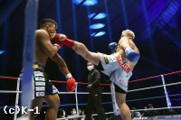 1R、谷川は顔面前蹴り、ローキック、ミドルと蹴りで先制。ANIMALはこれをかいくぐって右ストレート、左フックと強打を振るっていくが、谷川はクリーンヒットさせず逆にローキック、ミドル、カーフキック(膝から下・ふくらはぎを蹴るローキック)と足から崩していく。