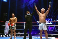 「(試合の感想は?)倒せなかった上に判定で負けてしまって、すさまじく悔しいですね。(相手の印象は?)もうちょっと顔面……今回の試合だと、彼が空手で足で、僕がどっちかというとパンチで、自分が思ったより、彼は空手家だけど、スパーリングをKRESTでやってるだけあって、けっこう重たいの入れたと思ったけど、耐久してたなっていうのがありますね。