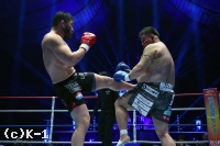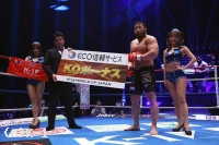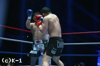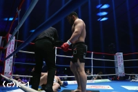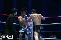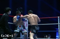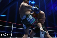 2R、実方を再び圧力でロープに詰めた石井は左フックをヒット。実方が中央に出てくると、身を沈めながらの左フックでダウンを奪い、続けて左フックで再度実方を打ち倒してKO勝利を収めた。K-1ルール3戦目にして初のKO勝利を収めた石井だが、左わき腹を押さえ苦悶の表情を見せたままバックステージへ。肋骨骨折の疑いがあるため、ドクターストップで準決勝進出はならなかった。