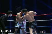 「(試合の感想は?)やられました。(相手の印象は?)体が大きいんでプレスを感じるかなと思ったんですけど、やってみたら思ったよりそんななかったんで。多少はあったんですけど、思った以上にはなかったです。(パンチ力が予想以上だった?)1回目のダウンはホントに吹っ飛ばされたという感じで、自分の中でそんなに効いた感じはなくて。2Rに入って、三日月蹴りが腹に相当効いたのは分かったので、いったところにヒザも入って、自分の意識も忘れてて。見えないところにいったので、アゴ先にもらったかなっていう感じだったので。パンチ力があったかなかったかって言ったら、最後のは見えてなかったので。まあでも、重さはありましたね。