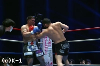 (結果的に石井選手はその後に棄権ということになりましたが)さっきしゃべったんですけど、『先に倒れてなかったら俺が倒れてたかもしれない』ということも言ってくださったし、いい負けというか、いい結果は残したのかなと思うんで、リベンジしたいですね。(パンチにヒザを合わせにいくのは作戦?)そうですね。作戦を立ててるうちでお腹が弱いというのは分かっているので、三日月蹴りとヒザはずっと作戦でした。(勝ち上がるよりも石井選手に勝つのが優先だった?)煽りVとかいろんなところでも言ってたんですけど、僕の中で石井選手はスーパースターで、どうしても勝ちたくて、勝ってから先のことを考えようと思ってたんで、ホントに石井選手だけ考えて練習してました。