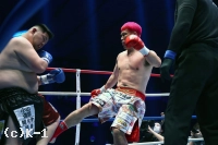 1R、坂本はジャブから左右ローを飛ばし距離を取る。カーフキックを放つ坂本だが、京太郎はそこに左右フックをまとめる。坂本の後ろ回し蹴りを、しかし京太郎は見切ってかわす。京太郎はガードの間から、あるいは坂本の打ち終わりに左フック、右ストレートを返していく。