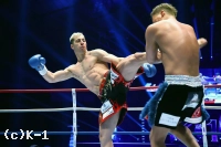1R、サッタリはグッと踏み込むかのフェイントからボディフック、ハイキック、スピンキックと放っていく。K-Jeeもしかし踏み込みに左フックのカウンターを狙う。だがサッタリは攻撃を止めず、左フック・右フック・左フックを打ち込み、K-Jeeを打ち倒しKOで降した。