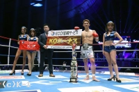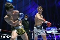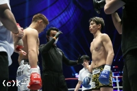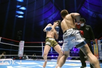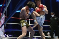 1R、野杁は歩くような足取りで前に進み、接近戦でヒザからボディフック・フックと加藤に打ち込む。脚へのヒザ、ローキックも入れる野杁は右ストレート、サウスポーになっての左ローと多彩な攻撃。そしてコーナーに追い詰めると、前蹴りをボディに突き刺し、左・右とショートストレートを入れてダウンを奪う。2R、野杁は間合いを詰め、ローキック、アッパー、脚への前蹴り、左ボディから左アッパーを突き上げ加藤がダウンしたところで陣営からタオルが舞った。