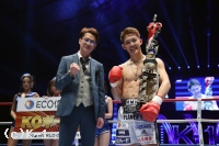 「(試合の感想は?)悔しいです。(相手の印象は?)やっぱり強かったなって、すげえ思いますね。(一番強さを感じた部分は?)ボディとか三日月蹴りは耐えられたんですけど、防御力、ディフェンスの高さがすごくて、俺的にはいいの入ったなって思った部分もあったんですけど、全然効いてないなと思いました。(圧力は?)圧力はそんなに感じなかったです。(ちょっと届かないというぐらいの差を感じた?)今回、野杁選手はたぶん相当手を抜いて俺と試合した感があったなと思うんですけど。今すぐっていうのは、リベンジしてもたぶん勝てないんで、実績を残して食らいつきたいなと思います。(ファンの方へメッセージを)今日はたくさんの応援していただき、ありがとうございました。1年ぶりの試合で野杁選手っていう、メチャクチャ強い選手と戦えて、気持ち的にずっと、どうしたら勝てるんだろう、どうやったらいけるんだろうって考えてたんですけど、結果的に負けちゃったんですけど、格闘技に対する熱が、今回の試合でまた出てきたんでまた応援してもらえるとうれしいです」