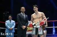 「カリスマ過ぎて1Rで倒しちゃいました。6月も楽しそうなことありますけど、俺はK-1内で野杁チャンピオンにリベンジすることしか考えてないんで、野杁チャンピオンが倒せなかった相手を倒して、挑戦者俺しかいないでしょ。今年チャンピオンの首狩ります」