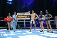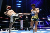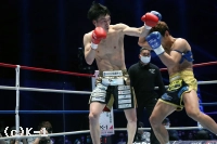 1R、サウスポーで歩を進めプレッシャーを掛けるプライチュンポンだが、安保は前蹴り、左フック、右ストレートと早速パワフルな攻撃を飛ばしていく。安保はバックブローから連打に入り、左ボディ、右ストレートと打ち込み、そして右フックでダウンを奪う。そして立ち上がったプライチュンポンに飛びヒザから入ると最後は左ボディフック。これでプライチュンポンを沈め初回KOした。