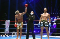 3R、モリは前に出て間合いを潰し、松倉にローを出させずアッパー連打。しかし距離があいたところで松倉は右カーフキックを入れ、これでモリをダウンさせる。立ち上がってパンチを狙うモリだが、松倉は三日月蹴り、ボディへのヒザと倒しに掛かる。モリはサウスポーに変わって松倉に右カーフを蹴りにくくさせる。松倉が右ストレートでモリをフラつかせて終了。判定は30-27、30-27、30-27で松倉。K-1復帰戦を飾った。