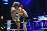2R、モリは松倉のカーフが気になるか、やや圧力が減じる。松倉は変わらずパンチをブロックしてカーフキック・ミドルを放っていく。モリはパワフルさを発揮し、右ストレート、ボディ打ちと松倉を攻める。松倉もミドルから顔への連打。ラウンド最後はモリに再びカーフを効かせる。