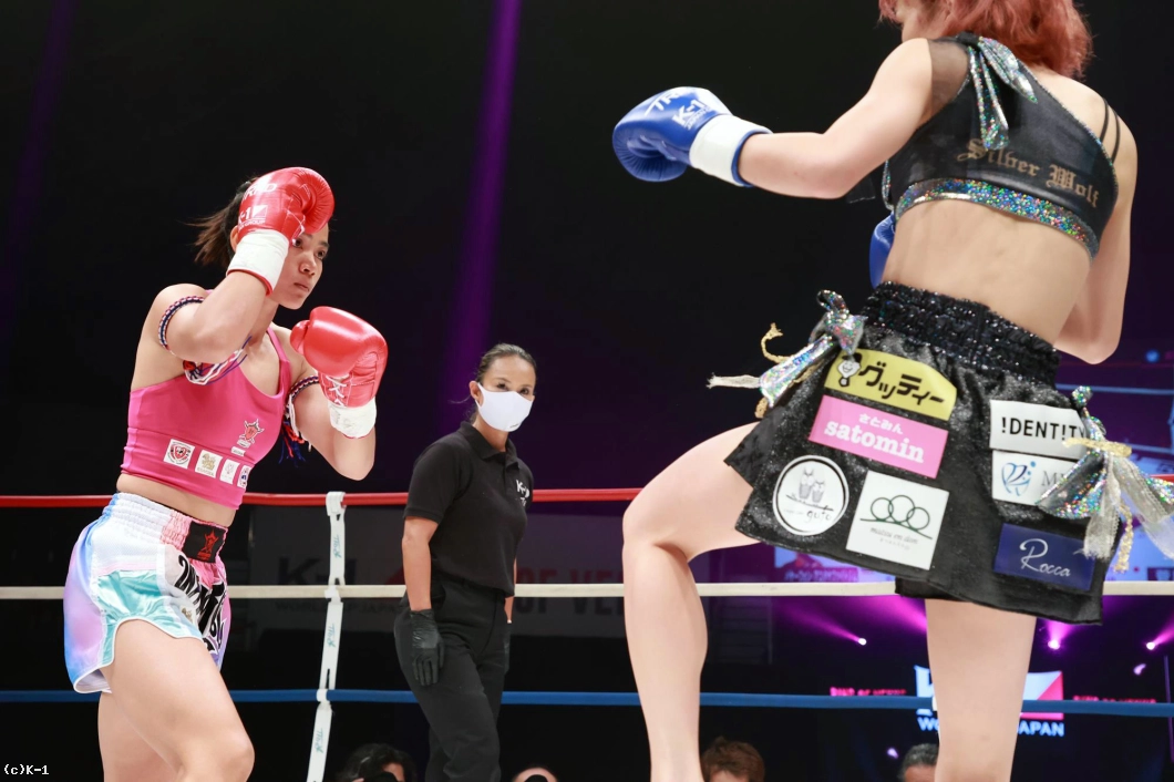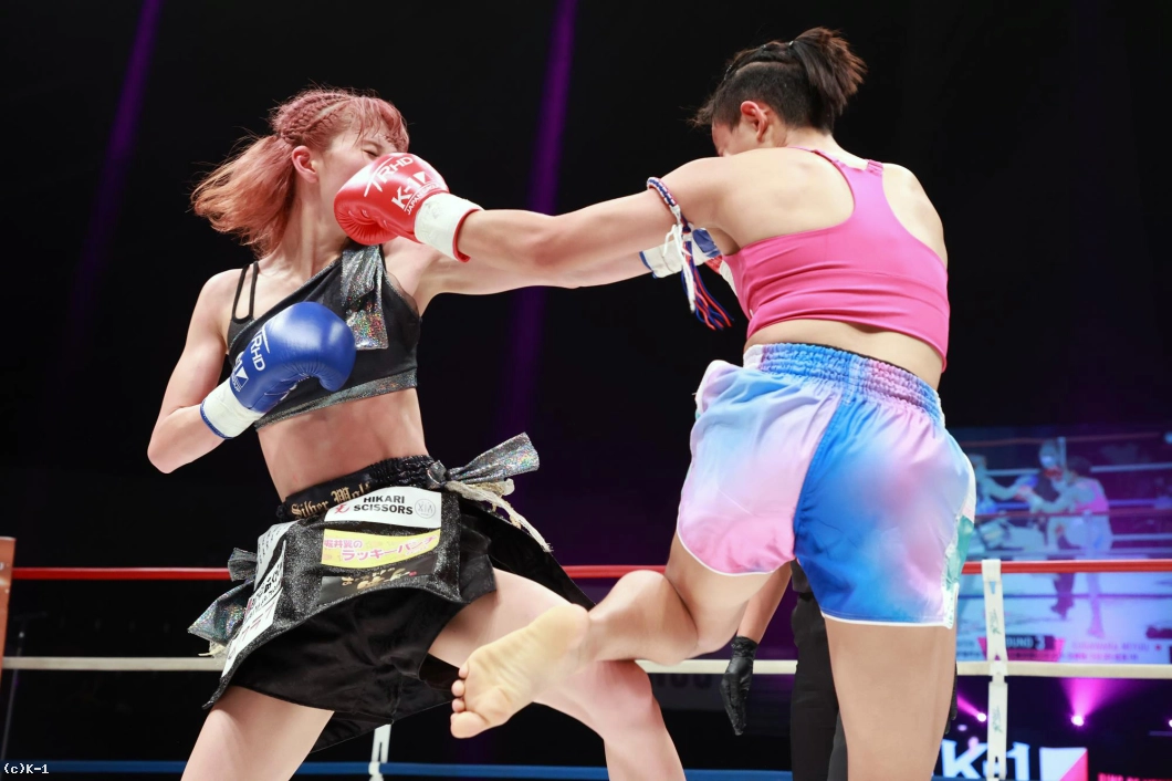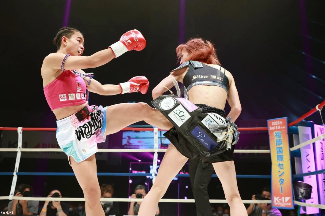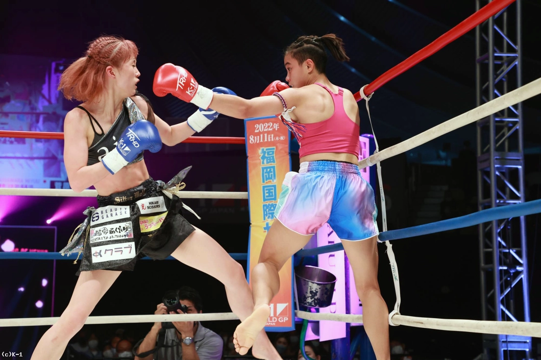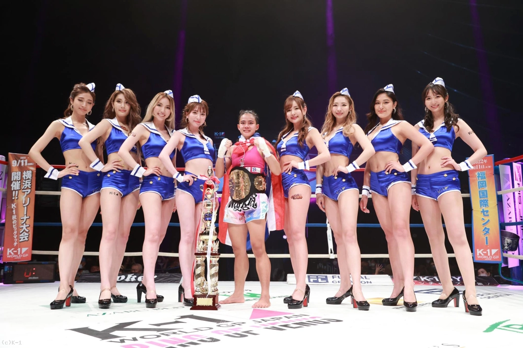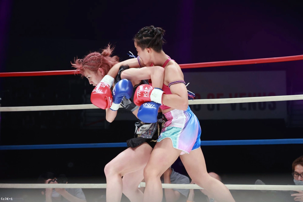 (終わったばかりだが新しい目標ができた?)自分の中では全然、新しい目標ではなくて。自分はまだkrushに出始めた頃に、高梨選手とパヤーフォンちゃんの試合を見て、あの高い壁を越えないとチャンピオンになれないと思っていて。自分はたまたま王座が空いたところで、運よくベルトを巻いてるんで。その壁は高かったなっていう感じなんで。新しい壁だなってわけじゃないですね。(ファンの方にメッセージを)押忍、たくさんの応援ありがとうございました。これからもしっかり前を向いて、強くなれるようにがんばります」