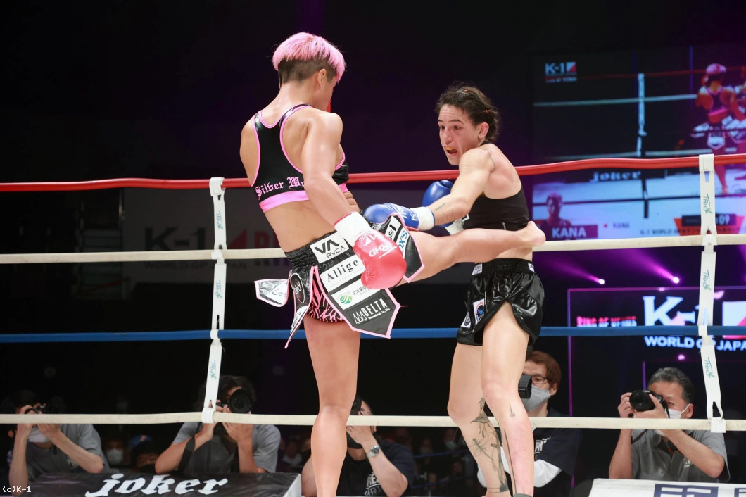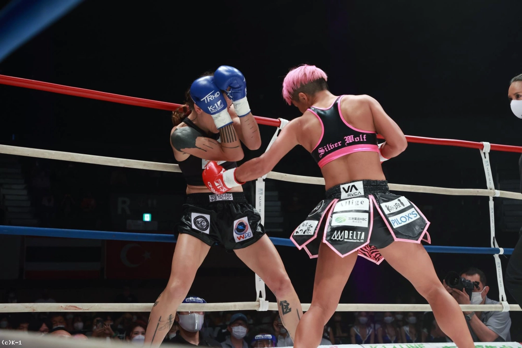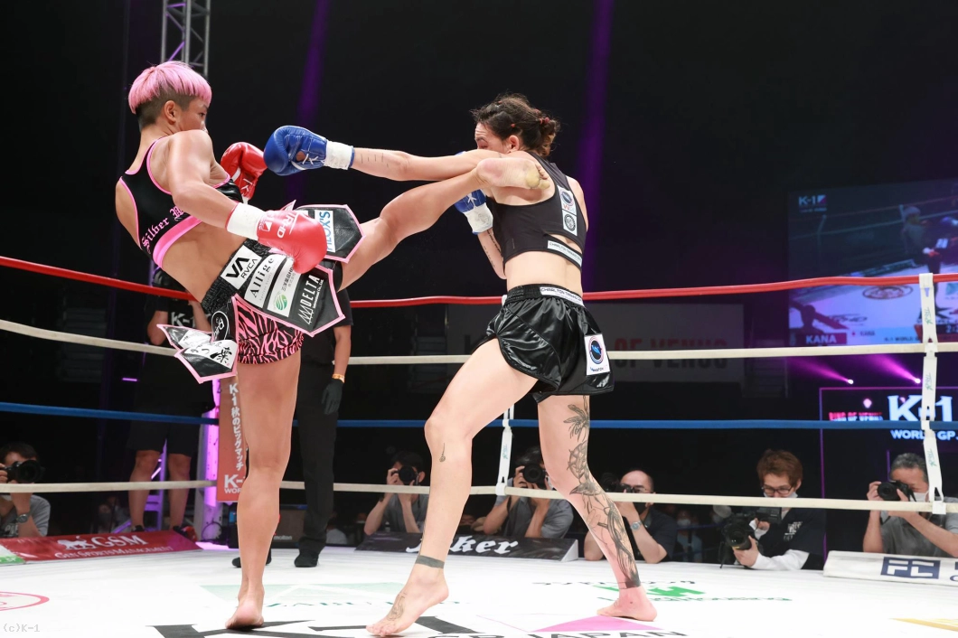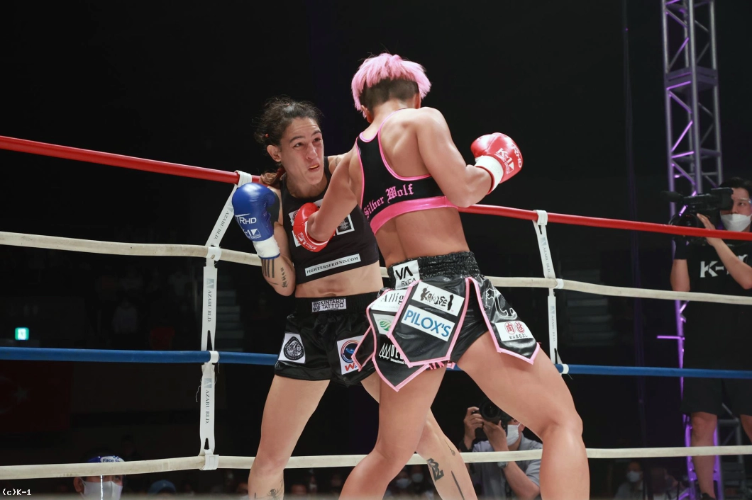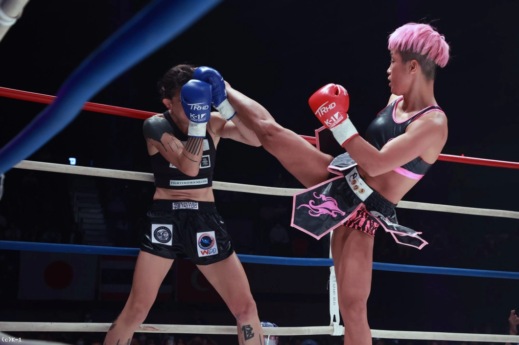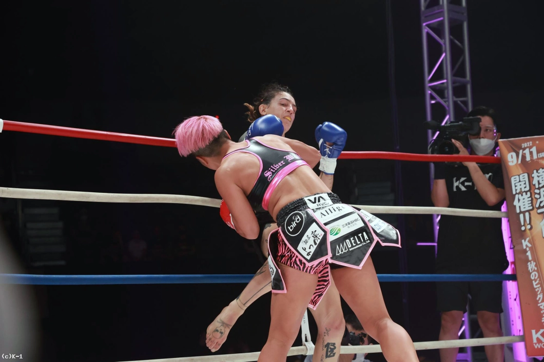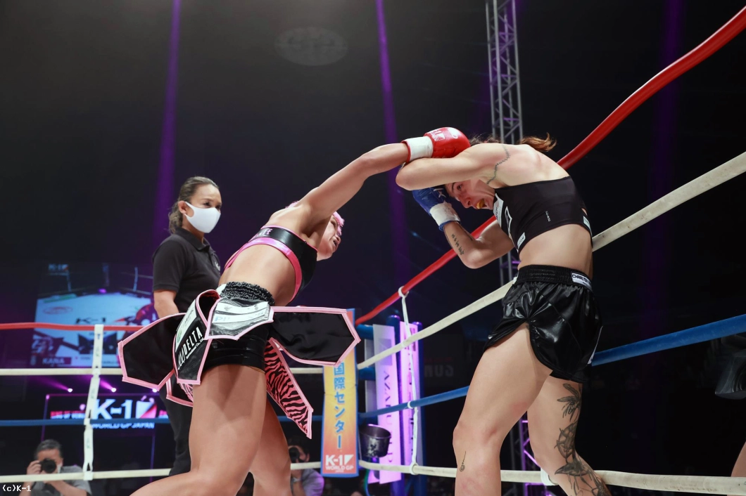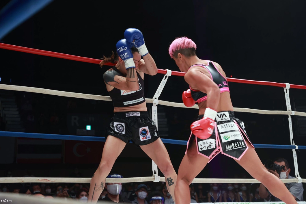 (K-1最強っていうのも絶対に言いたかった?)KOで勝って、絶対に言おうと思ってました。(ファンの方にメッセージを)今日は応援ありがとうございました。そして、K-1の女子の選手もみんな、ありがとうございました。これからも自分が女子の先頭を走って、K-1をもっともっと大きくしていくんで。このK-1の女子の舞台をみんなに目指してほしいと思います。これがK-1の女子のスタートだと思ってるんで、これからも応援よろしくお願いします。ありがとうございました」