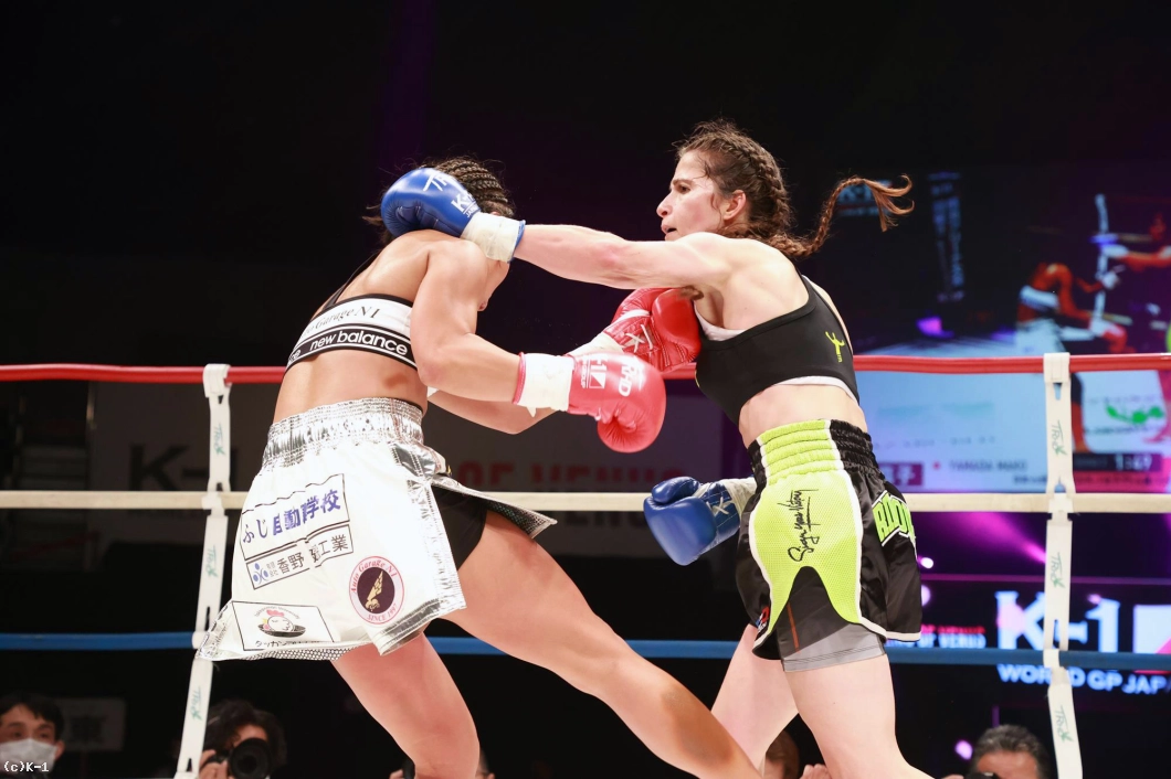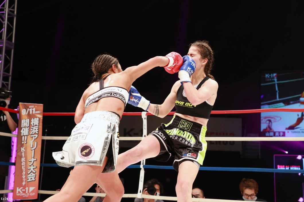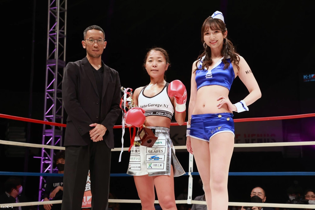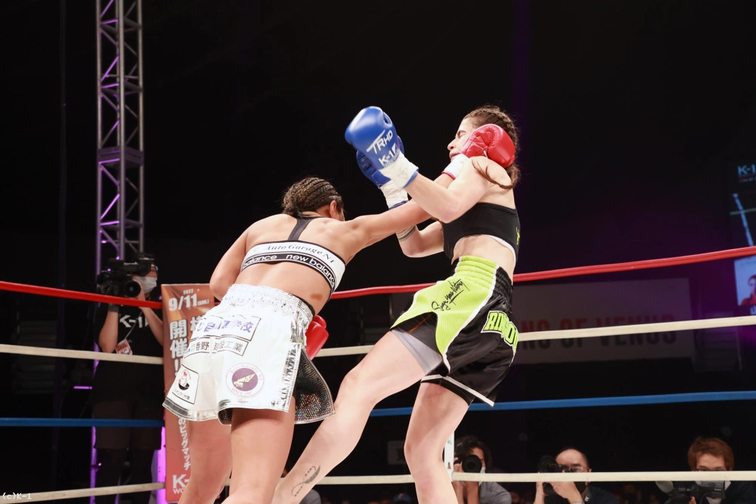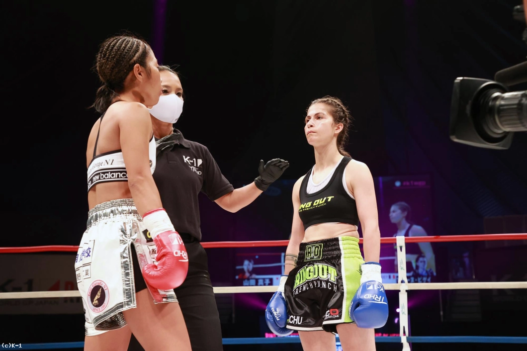 「(試合の感想は?)私にとってはハードな試合でした。練習や準備を重ねたんですけど、ああいう結果になってしまいました。(対戦相手の印象は?)ずっとKOを狙いながら試合をやっていたんですが、それがかなわなくて彼女も狙ってたと思うんですけど、彼女もできなかった。きっと何かが足りなかったのかなと、そんな印象を持っています。(ファンの方にメッセージを)みなさん、ありがとうございました。また日本に戻ってきて、いい試合をしたいと思っています」