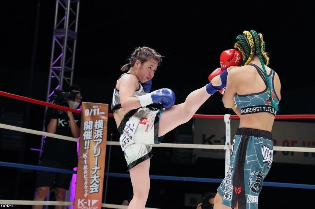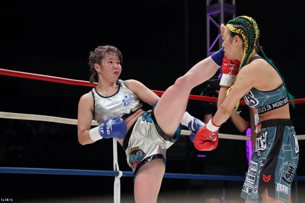 「(試合の感想は?)K-1初参戦で勝てたこと、うれしいんですけど、今回はいつもバチバチ打ち合うスタイルに、プラス技術を使って戦う試合だったんですけど、ひさびさの3分3Rでちょっと3R疲れてしまって、バタバタの試合になってしまったのがものすごく悔しいです。でも、勝ててよかったです。(対戦相手の印象は?)1Rにカーフと顔面前蹴りでけっこう効いてるのがわかったんですけど、それでも3Rまで前に前に出続けて、パンチとかも強くて、とても強い選手でした。