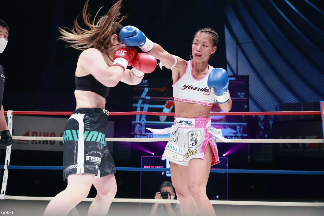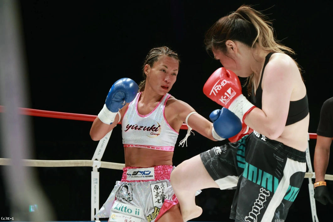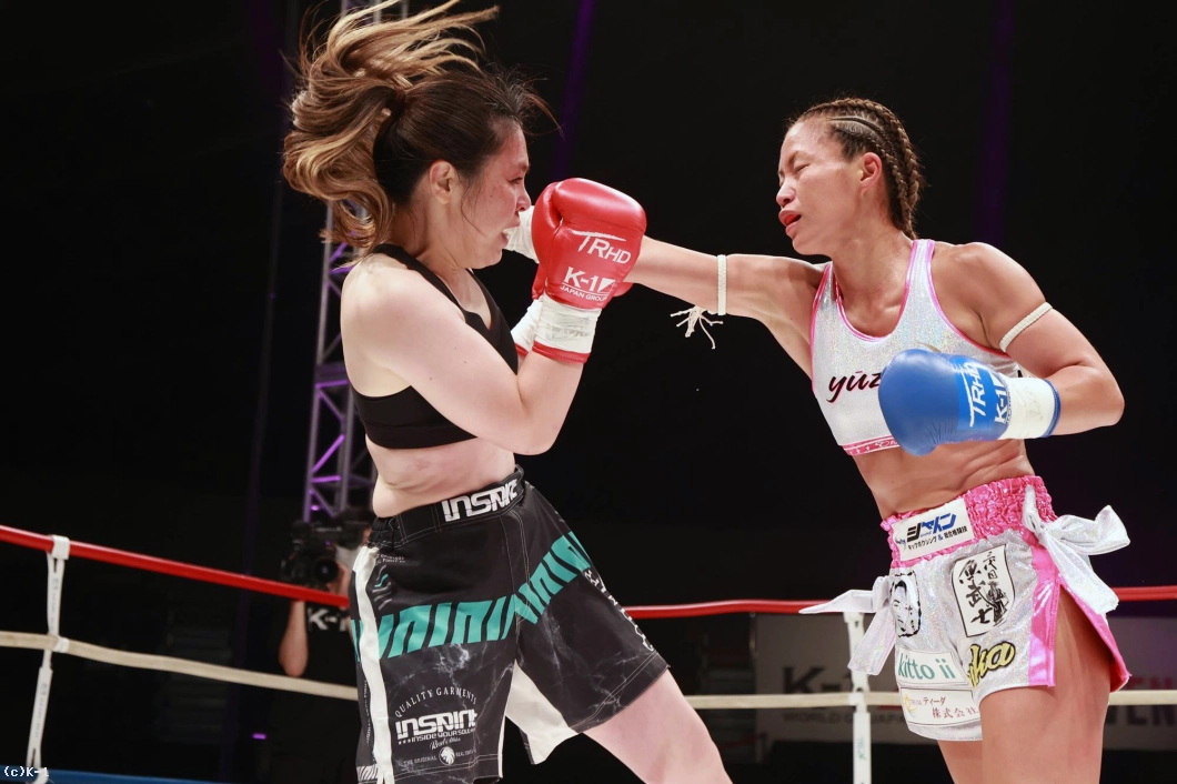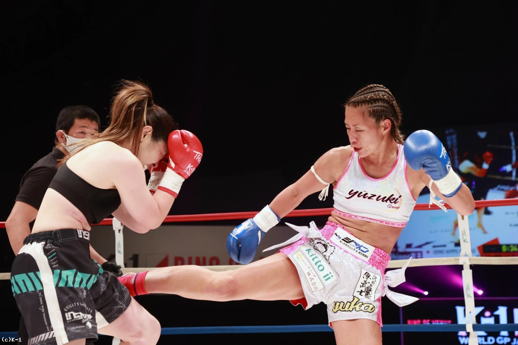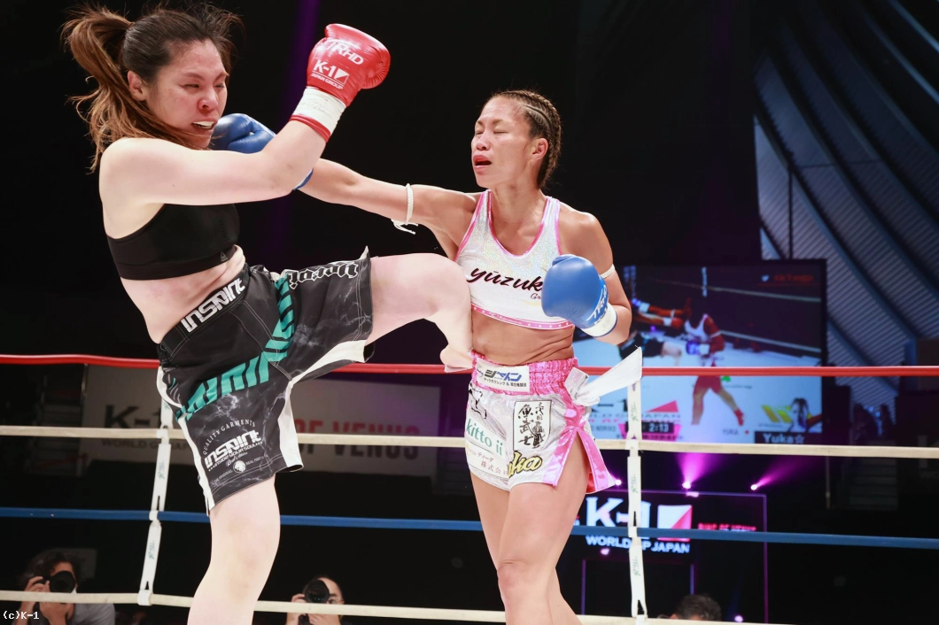 (昨日、同門のerika♡選手も勝って、いい形につながりましたが)そうですね。今日も応援に来てくれて、サポートしてくれていい流れにつなげてくれたので、勝つことができてよかったです。(大きい大会で結果が出て、これからK-1で目指すところは?)まだミニマム級のベルトがないので、そこを狙ってしっかり倒せるように練習していきたいと思ってますし、自分はパンチが一応得意ではあるので、そこを極めて、しっかりKOを狙っていける選手になりたいと思います。