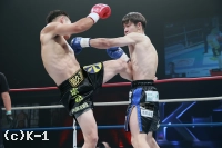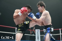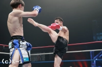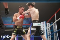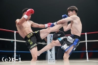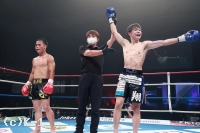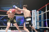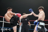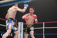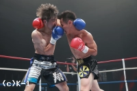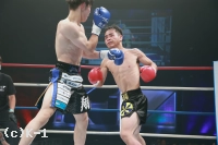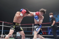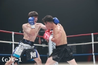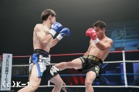立ち上がった宗一郎はサウスポーにもスイッチしながらフックで向かう。長野はパンチに加えカーフキックも見せダメージを与える。前に出て追う宗一郎だが、長野はバックステップしてかわしていく。