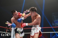 立ち上がったワンに斗麗は跳びヒザ。しかしワンもフックから跳びヒザをやり返す。