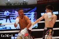 「(試合の感想は?)率直な感想でいうと、倒しきれずで悔しかったなっていう感じです。(対戦相手の印象は?)戦う前も戦ったあとも押忍って感じですね。(東京ドームの雰囲気は?)本当、最高でしたね。最高でした、押忍です(笑)。(今後の展望は?)今後はK-1のチャンピオンとして、70kgなんで海外勢も強いんですけど、コロナも落ち着いてきた頃なんで、どんどん海外の強い選手と戦っていきたいなって思います。(どのへんがよくて、3回ダウンを取ることができた?)最近、ダウン取るのも蹴りが多かったんですけど、今回はパンチをすごく練習してきたんですよ。手応えというか、パンチが出たのがよかったかなと思います。(倒しきれなかったのは相手がすごかった?)3回ダウン取ってるんで、相手もすごいがんばってたと思うんですけど、自分の技術がなかったのかなっていうふうに思います。(倒しかたのコツがつかめてきたのはあった?)そうですね。当たれば倒れるというのはもともと、ずっとあって。いつでも倒せるなっていうのはあったんですけど。今回、パンチを練習してきたのもあって、蹴りがちょっと出なかったのかなっていう感じですね。もっと蹴って蹴ってってしてたら倒せてたのかなって感じです」