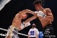 3R、圧力をかけるのは野杁。コーナーを背負う海人に野杁が連打を見せると、海人も細かいパンチで応戦する。野杁の左ボディに海人は右アッパーを返す。頭を使える距離で野杁は左ボディ、海人は右ストレートで突き放す。野杁の右フックに海人は左フックを被せ、連打はさせず。ロープを背負う野杁に海人がフックの連打。さらにボディに右ヒザを突き上げる。ゴング直前には海人のワンツーに野杁が右ハイキックを見せ試合終了。判定は三者とも30-30。1Rの延長戦が行われる。