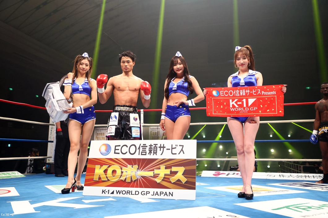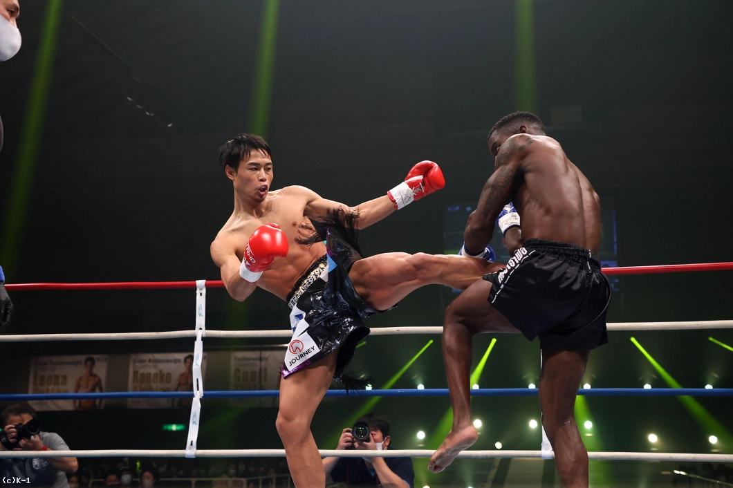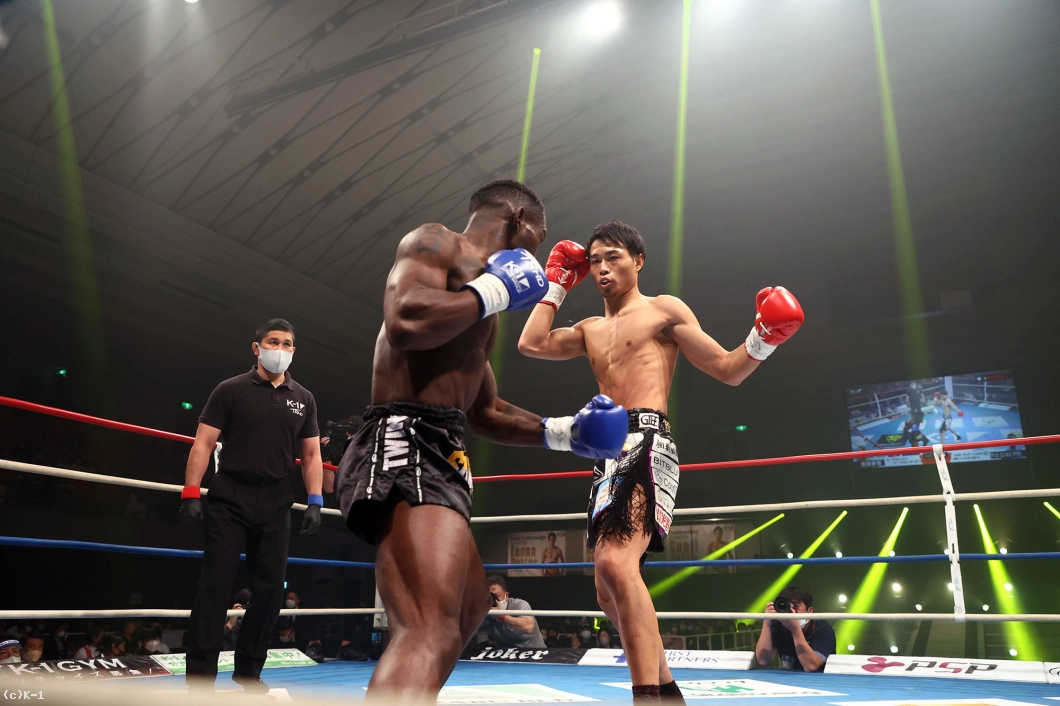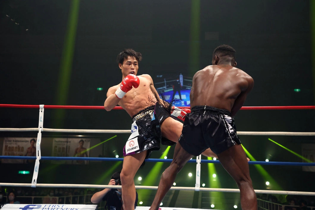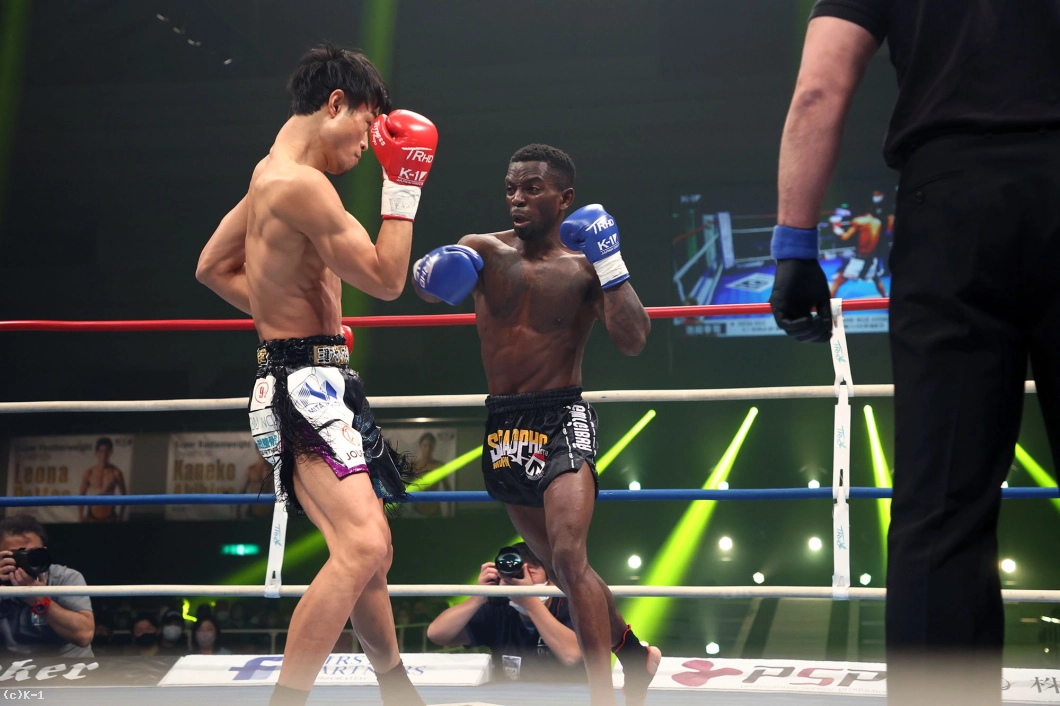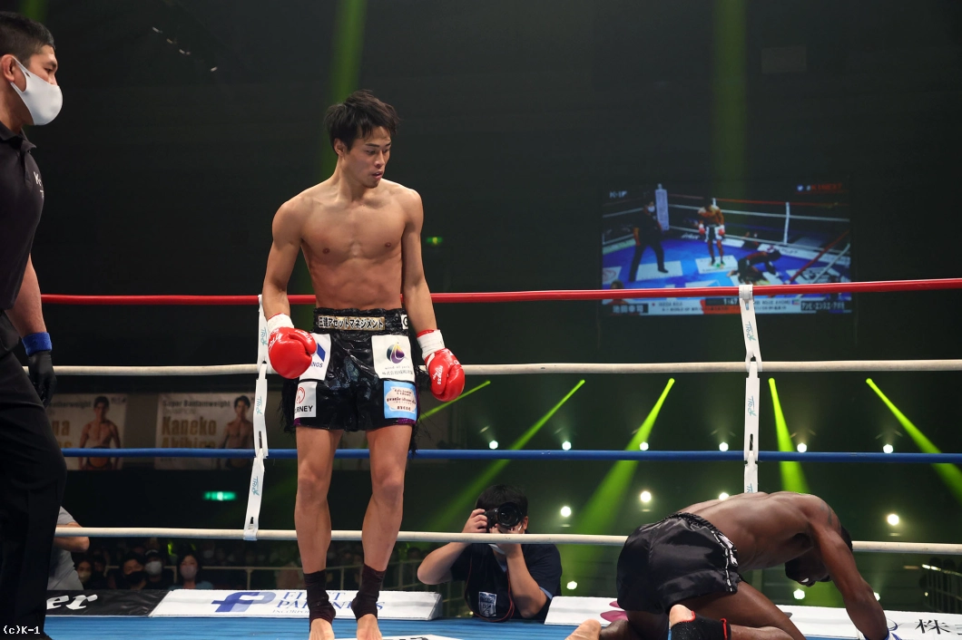 立ち上がったアボモだが、池田は再び前蹴りでボディをとらえフィニッシュした。