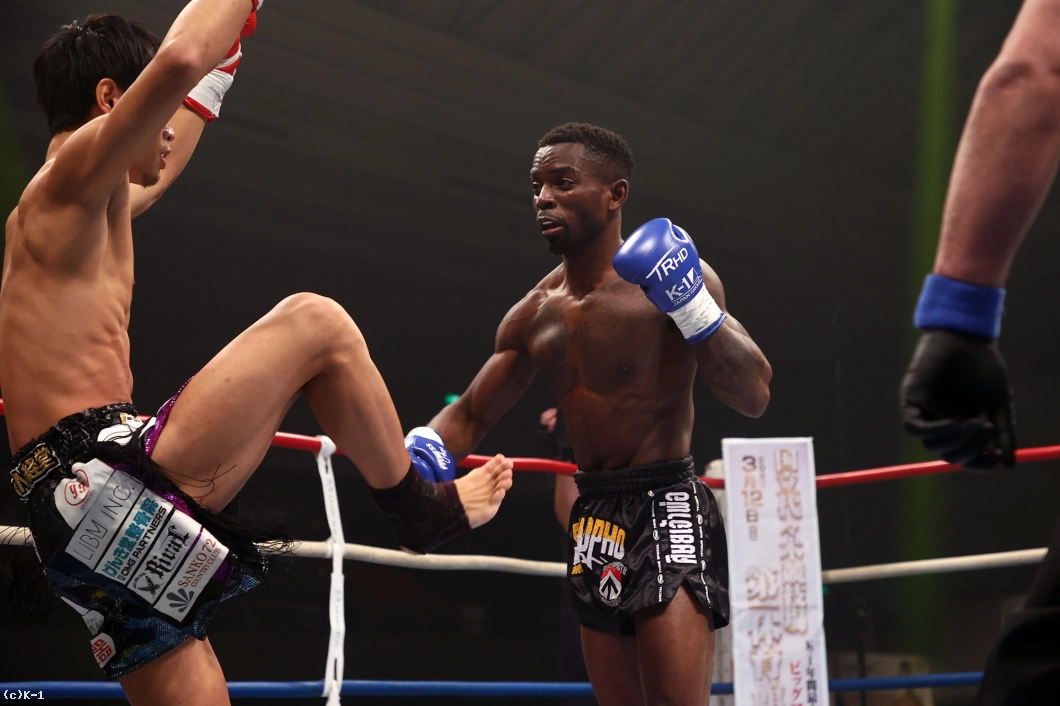 2Rも池田はリーチを有効に使い、右ストレート、左ミドルとアボモに攻勢。そして三日月蹴りをめり込ませ、2度目のダウンを決める。
