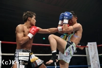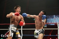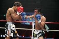2R、軍司は左フック・左ボディフックから右ロー、ヒザと猛ラッシュ。しかしワンはタフさを見せ、右ストレート、左フックと軍司に打ち返す。軍司はしかしジャブから右ストレート、左フックから右ストレートとヒットを上げていく。だが、ワンも気持ちを切らさずヒザ蹴りからの右ストレート。だが軍司は左フックでワンの腰を落とさせ、右ストレートと攻める。