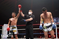 3R、軍司は右クロスを打ち込むが、ワンはすぐに左フックをリターン。ワンはタフさを落とさず、左フックの相打ちでも下がらない。軍司は左右フックにヒザを織り交ぜ攻める。ワンはさすがに苦しいか体をつけてヒザを多用。押し合いとなり軍司はバランスを崩して倒れるなど消耗が見られる。ワンはそこに左フック、右ストレートを見舞って終える。