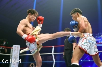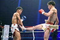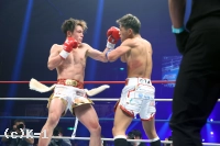 両者ミドルとロー、前蹴りを出して距離を探り合う。サウスポーでにじり寄ろうとする斗麗だが、玖村は右ミドルを当てていく。斗麗はオーソドックスに戻ると右クロスを当て、そこから連打をフォローしダウンを奪う。立ち上がった玖村に斗麗はサウスポーで向かい、左ストレート、飛びヒザと攻め、攻勢で終える。