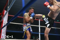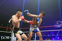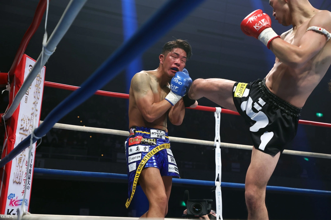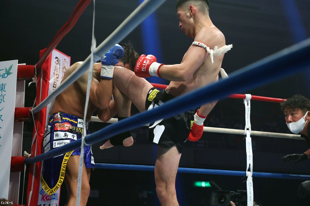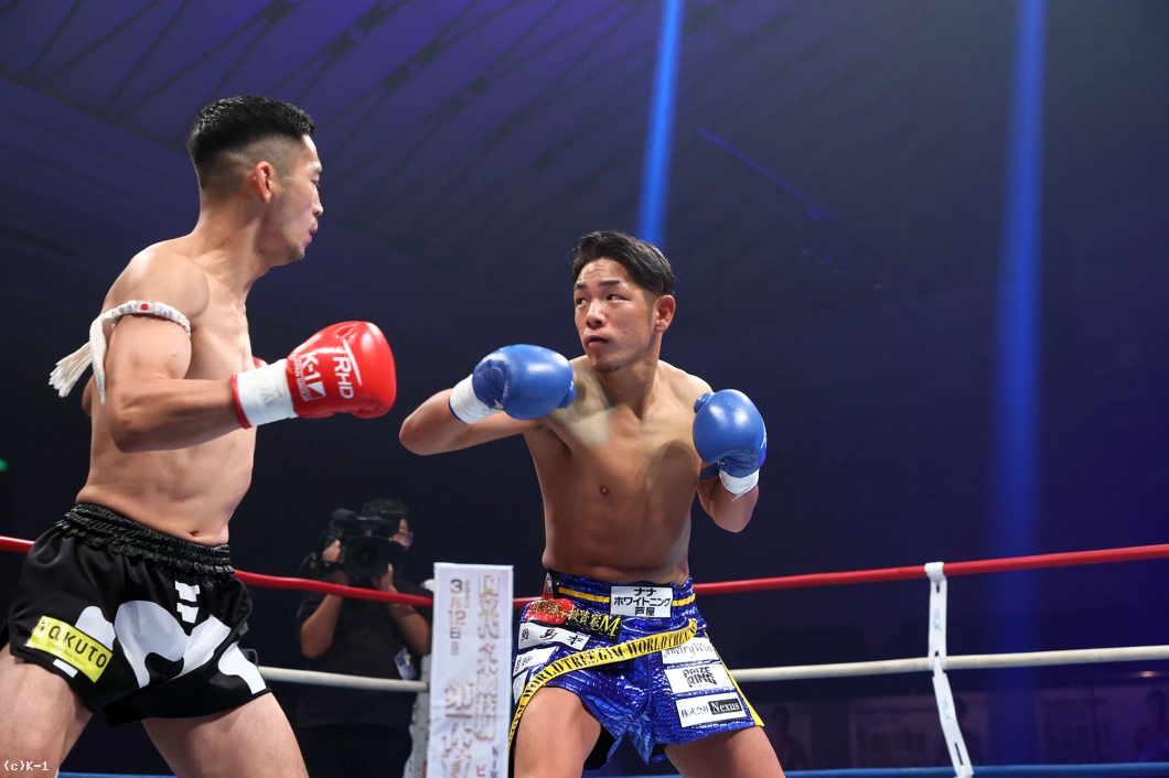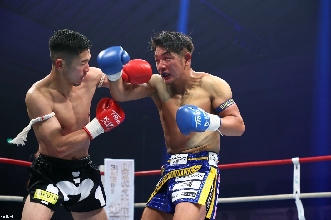 2R、弘輝は左ミドル、左ストレートと当て前に出る。圧を掛けパンチを当てた弘輝だが、篠原は弘輝の蹴り終わりにストレートを当て圧力を止める。篠原はボディストレート、アッパー、飛びヒザと動きが見えてきたか攻撃が多彩になってくる。来いと呼び込む弘輝だが、篠原の左フックと右ストレートを連続で浴び2Rが終わる。