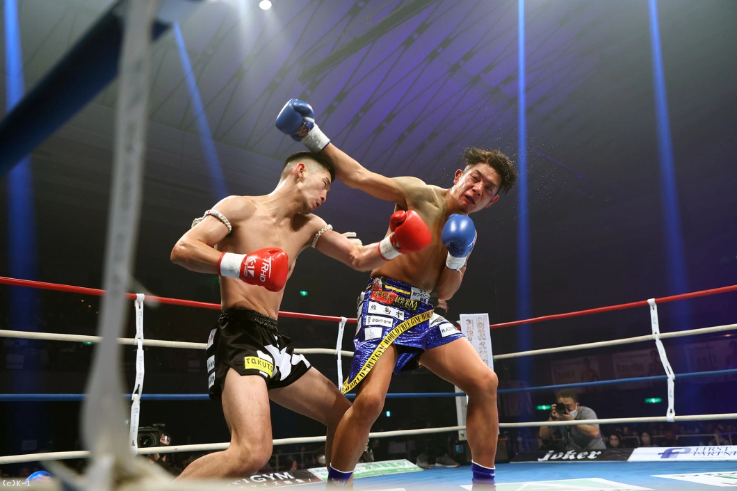3R、距離が取れ弘輝の攻撃が見えている印象の篠原は左フック、右ストレートを当てていく。逆に弘輝が振るうパンチは空を切らせる。弘輝はダッシュしてラフファイトを仕掛けるが、篠原はボディにヒザを入れ、コーナーを背負わせてボディ打ちとストレートで攻める。しかし弘輝も左ストレートで抗戦。だが篠原は終盤に右ストレートでダウンを奪って試合を終える。
