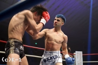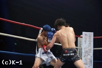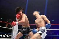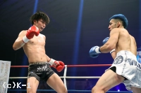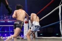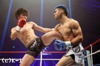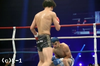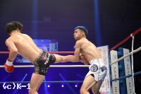 1R、前蹴りを多用してくるアル・カディだが玖村は落ち着きを失わず左フックをヒット。そして三日月蹴りを打ち込んでアル・カディを追う。玖村は三日月蹴りに加え左ボディも決めていく。さらにカーフキックも入れる玖村。そして左ボディフックを効かせてアル・カディにガードを落とさせ、ラウンド最後にこのボディフックでダウンを奪う。