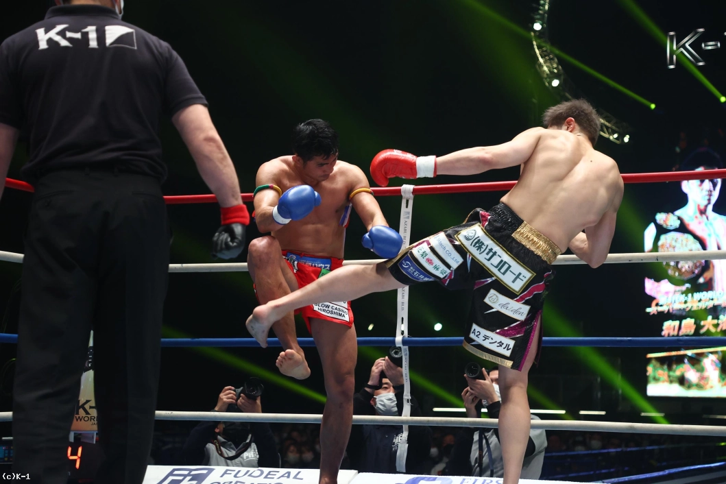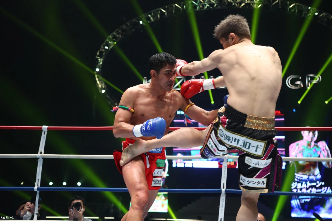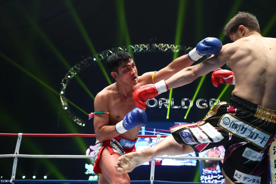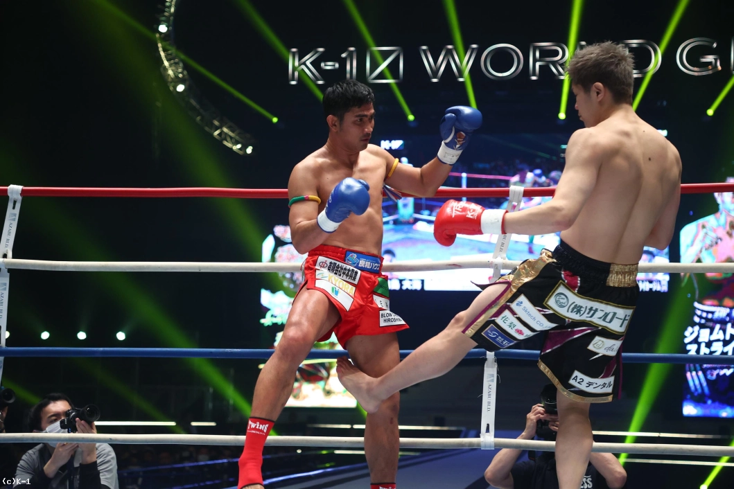 1R、両者サウスポーで向き合い、ジョムトーン、和島の順でローを蹴り合う。ジョムトーンにローを蹴られると和島もローを返す。ジョムトーンは左ストレートを伸ばしコーナーに詰めてくるが、和島はフットワークしてここを脱する。和島はハイキックを入れ、ジョムトーンが蹴り返して来ると足を上げてカットする。終了直前、ジョムトーンは左ストレートを決めるが、和島はかろうじて体勢を保つ。