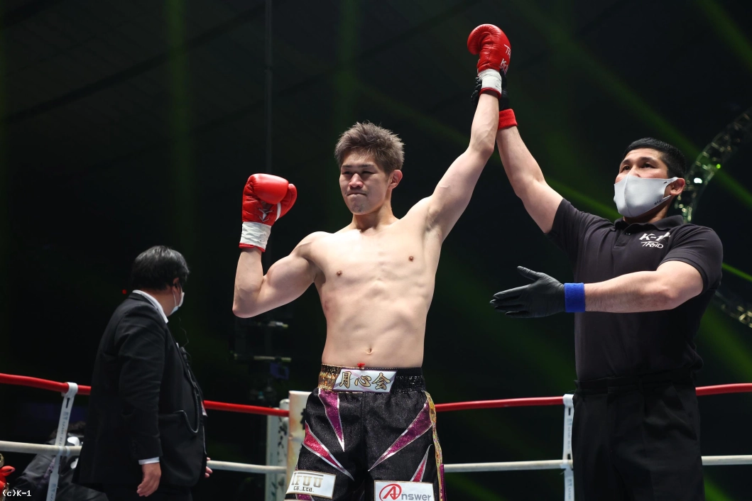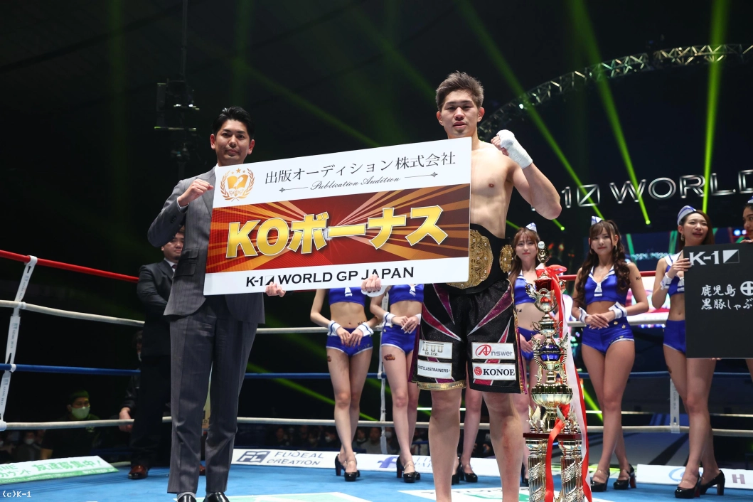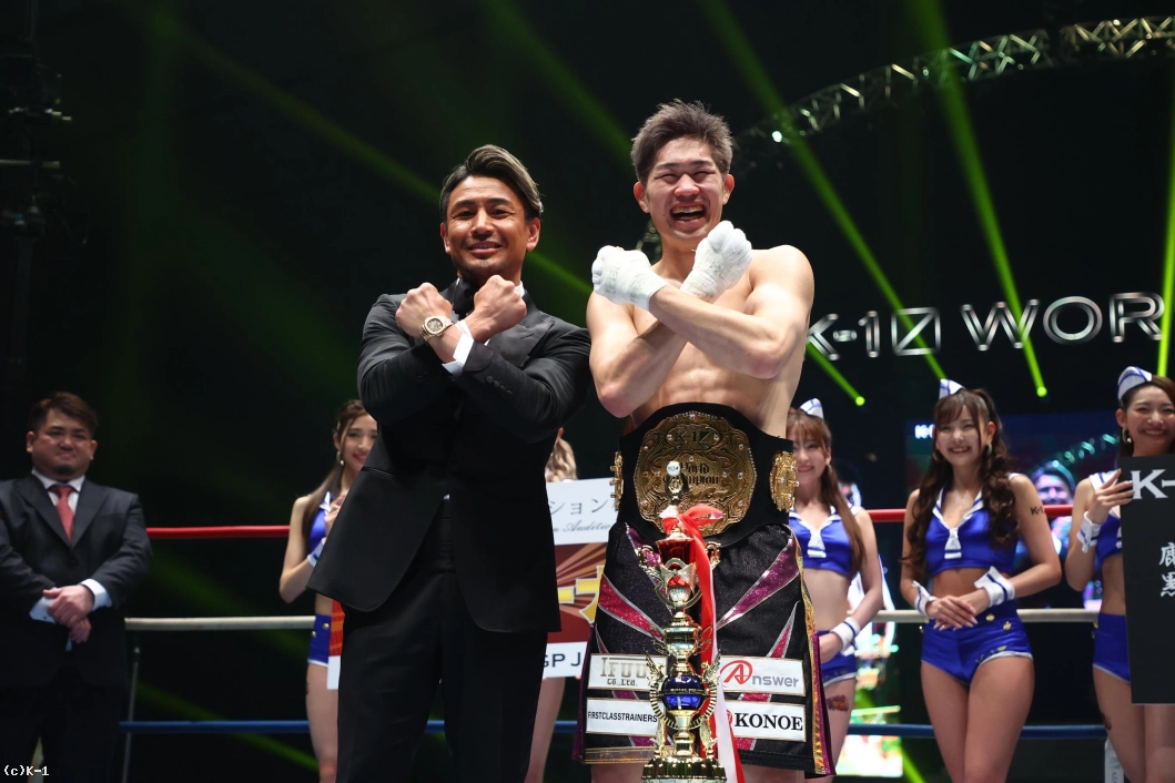 「今日はありがとうございました。ジョムトーン選手、めっちゃ強かったです。どうですか、このベルト。ちょっと似合うようになってきましたか? 強い選手とやっていかないといけないので、みなさんにお願いがあるんですけど、強い選手とやっていくには影響力が大事といわれていて、K-1さんにもSNSを頑張れと言われています。もっと強い選手やいい試合をしていきますので、ツイッターとインスタをフォローお願いしマックス!」