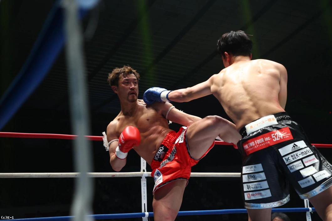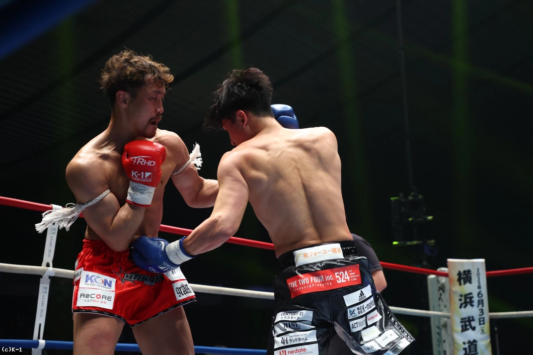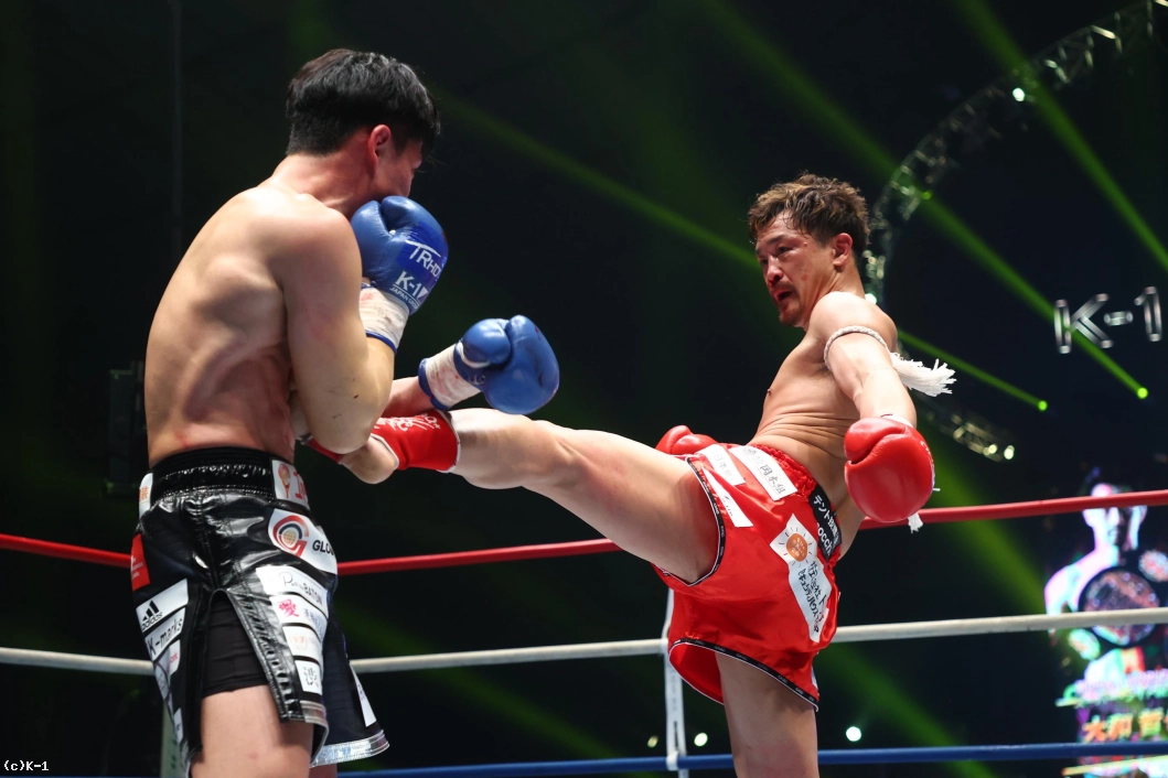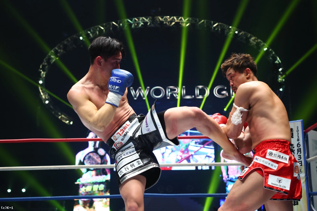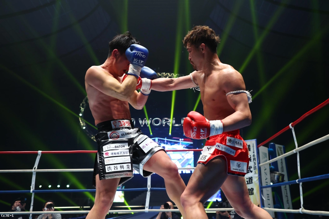 1R、大和は左インロー、左ミドルと先制するが、林もすぐローを返し、パンチを狙って距離を詰める。大和は左ミドルで林のわき腹をとらえるが、林は間合いを狭めて追撃を封じる。大和をロープに詰めた林はジャブを伸ばすが、大和は右クロスをかぶせて林の腰を落とさせ先制ダウンを奪取する。しかし再開すると林はジャブを当て、左フック、アッパーと反撃して1Rを終える。