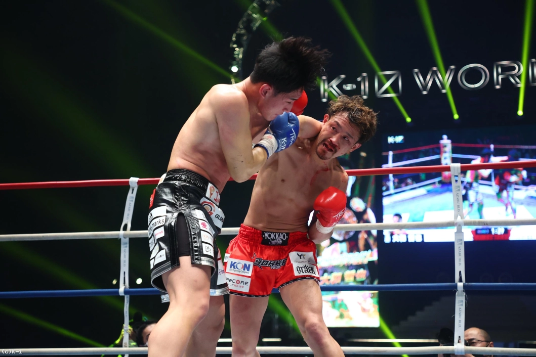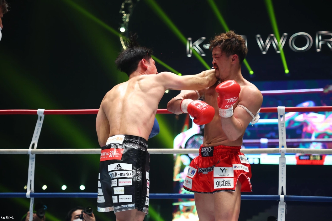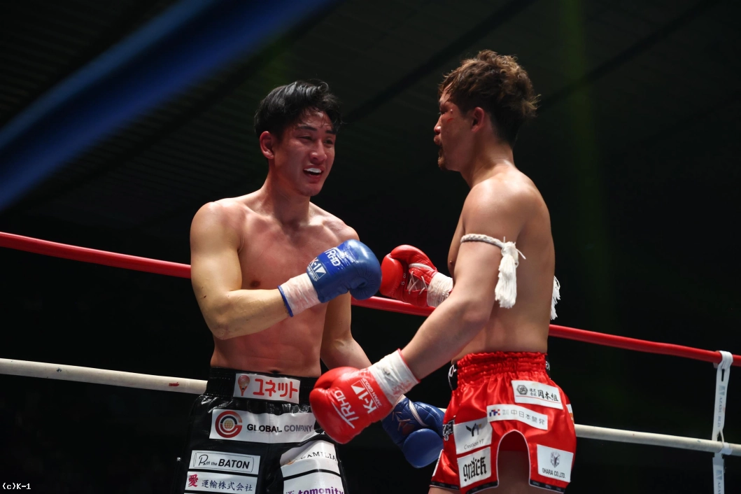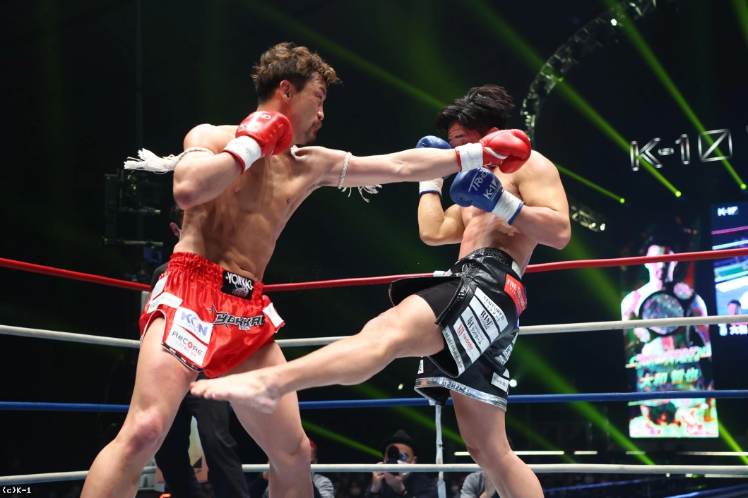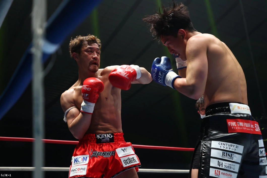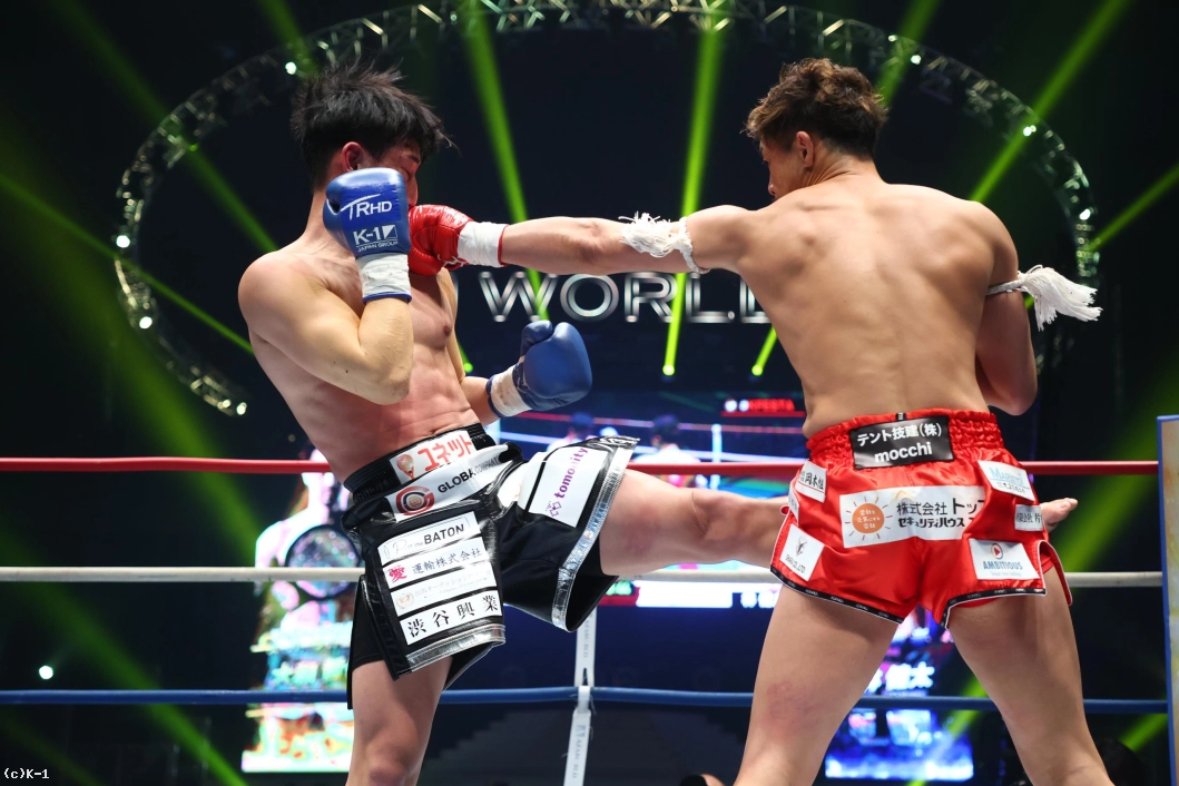 1R、大和は左インロー、左ミドルと先制するが、林もすぐローを返し、パンチを狙って距離を詰める。大和は左ミドルで林のわき腹をとらえるが、林は間合いを狭めて追撃を封じる。大和をロープに詰めた林はジャブを伸ばすが、大和は右クロスをかぶせて林の腰を落とさせ先制ダウンを奪取する。しかし再開すると林はジャブを当て、左フック、アッパーと反撃して1Rを終える。