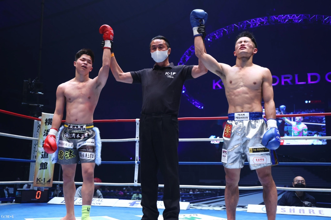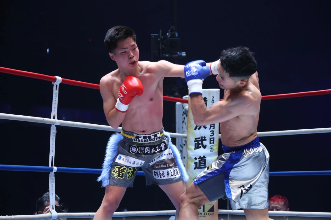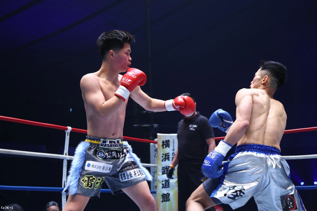 3R、山本は圧力を強める。橋本はガードを強め、左ストレートと前蹴りにも力を込める。前に出てくる山本にジャブ、ミドルの橋本だが、山本もストレートを当て返す。山本が橋本にロープを背負わせる。山本は再度ハイキックをヒット。鼻血の見られる山本だが、橋本を下がらせながらパンチを振るって終了する。判定は30-29(山本)、30-30、30-29(橋本)の1-1でドロー。熱戦の決着はつかなかった。