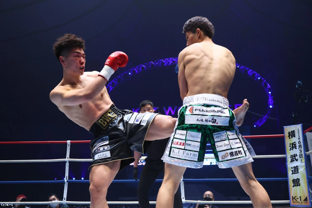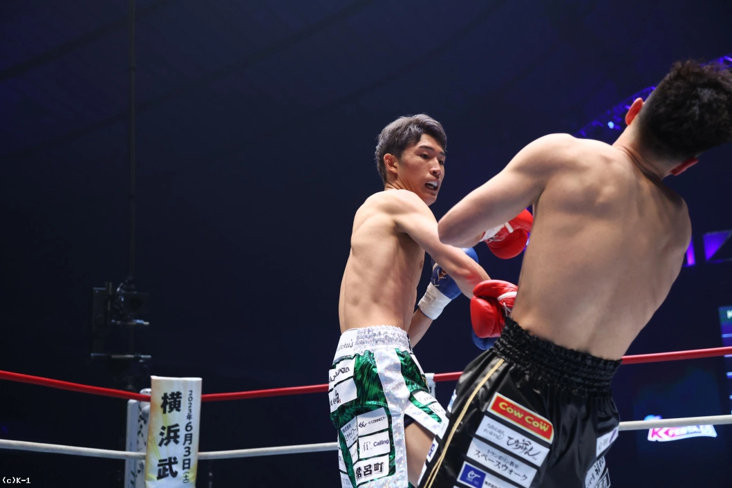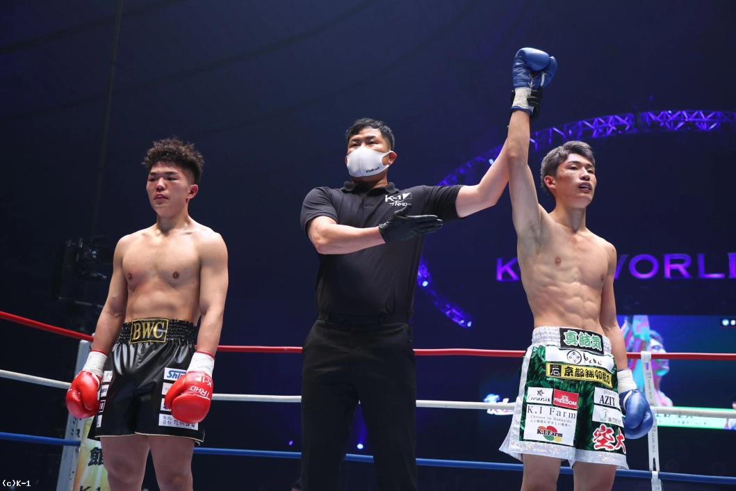 3R、左右のフックを踏み込んで放つ竜義に対し、上野は距離をあけ、三日月蹴り・ハイキックと放つ。竜義はサウスポーに変わると左フックをヒット。パンチから蹴りに連係する上野だが、近距離パンチの打ち合いでは竜義のヒットが目立つ。上野はしかしパンチで前に出てヒザを突き上げ終える。判定は30-29、30-29、29-28の3-0で上野。苦しんだがデビュー戦を勝利した。